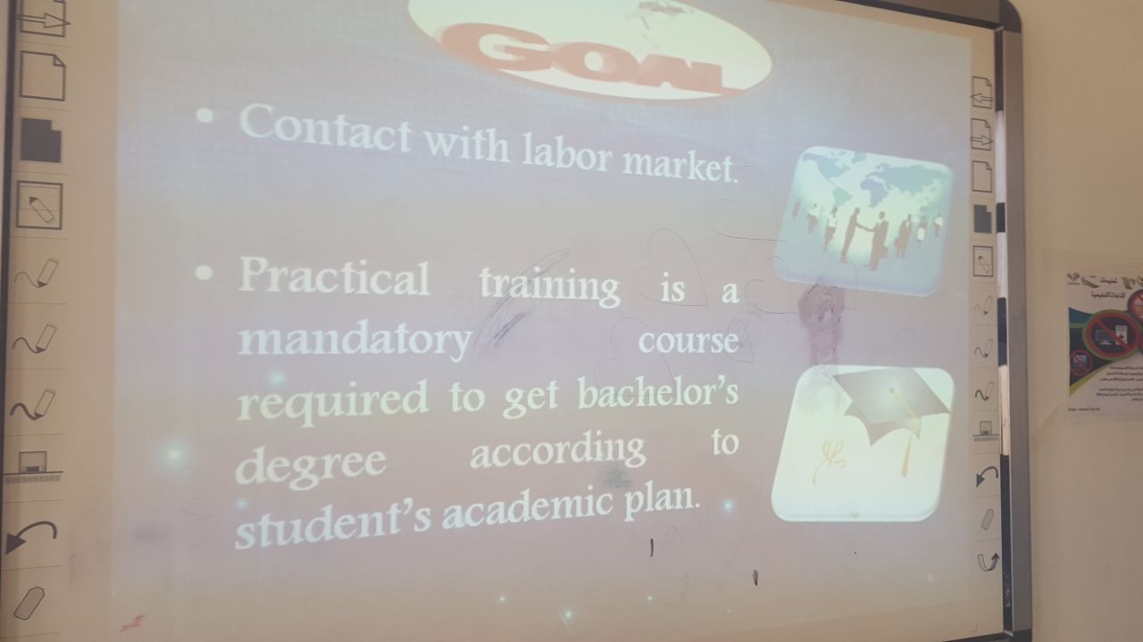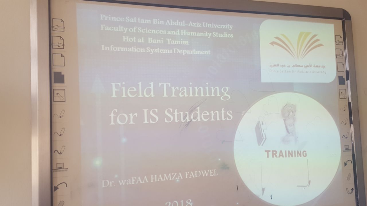 تحت رعاية عميدة كلية العلوم والدراسات الإنسانية بحوطة بني تميم الدكتورة حصة بنت سعود الهزاني، أقامت وحدة تقنية المعلومات بالتعاون مع وحدة العمل الطلابي برنامج تهيئة طالبات المستوى السادس بقسم نظم المعلومات للتدريب الميداني وذلك في يوم الأربعاء الموافق 15/ 5 / 1439 هـ . من خلال هذا البرنامج تم تعريف الطالبات بالتدريب الميداني، وأهدافه، وطريقة سيره خلال العام الدراسي، كما تم تزويد الطالبات بقوائم التوزيع للمجموعات والمشرفات على المشاريع. وتم أيضا الإجابة على استفسارات الطالبات حول كل مايتعلق بالتدريب الميداني