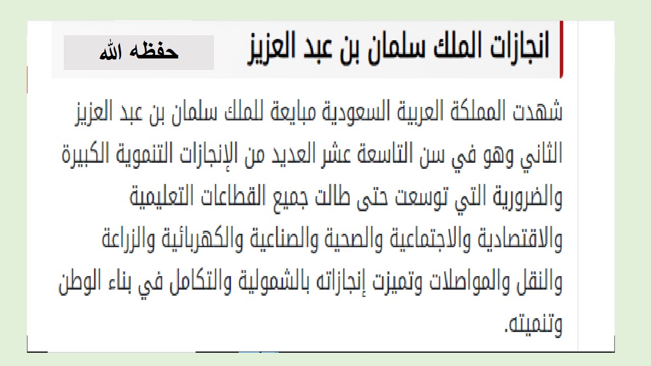 يصادف يوم الأربعاء الثالث من شهر ربيع الآخر1442هـ الموافق 18 من شهر نوفمبر 2020م مناسبة مرور ستة أعوام على تولي خادم الحرمين الشريفين الملك سلمان بن عبد العزيز آل سعود - حفظه الله - مقاليد الحكم ملكًا للمملكة العربية السعودية ، ويحتفي شعب المملكة والمقيمون على أرضها بهذه المناسبة بقلوب محبة مطمئنة شغوفة بالإنجازات ممتنة لخير العطاء، في مجالات الحياة كافة، يلامسون بحواسهم التطور الذي تشهده أجهزة ومؤسسات الدولة في مختلف أنحاء المملكة.