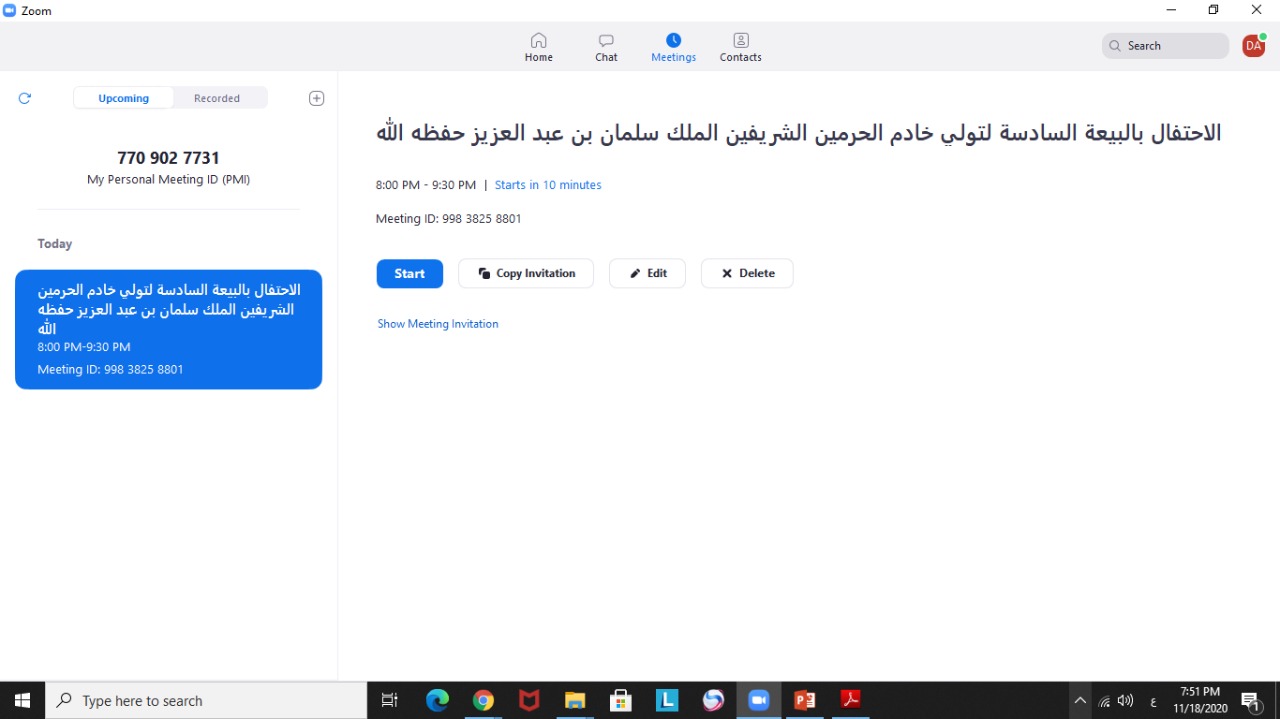 وبهذه المناسبة العظيمة و تحت رعاية مشرف الكلية سعادة الدكتور عمر بن نوح المطيري أقامت وحدة العمل الطلابي (ممثلة في الأنشطة الثقافية والإجتماعية و المجلس الطلابي) و وحدة خدمة المجتمع بكلية العلوم الطبية التطبيقية بجامعة الأمير سطام بن عبد العزيز بوادي الدواسر حفلاً إفتراضياً عن بعد (عبر تطبيق زووم) للطالبات و أعضاء هيئة التدريس والطاقم الإداري بالكلية، وذلك يوم الأربعاء الموافق 3-4-1442 هـ في تمام الساعة الثامنة مساءاً.