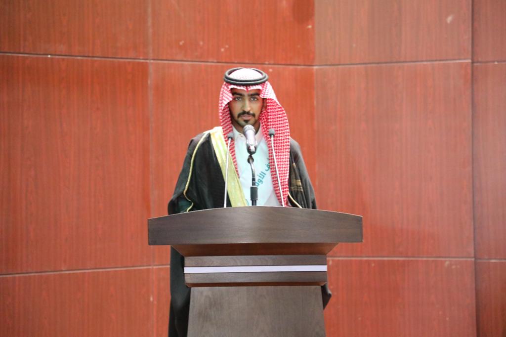 ثم ألقى الخريج فهد بن ناشر الهدلاء كلمة نيابة عن الخريجين.