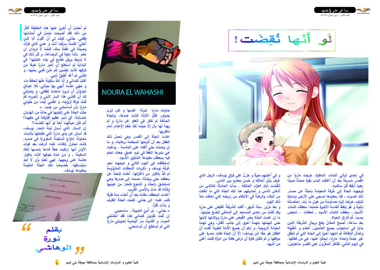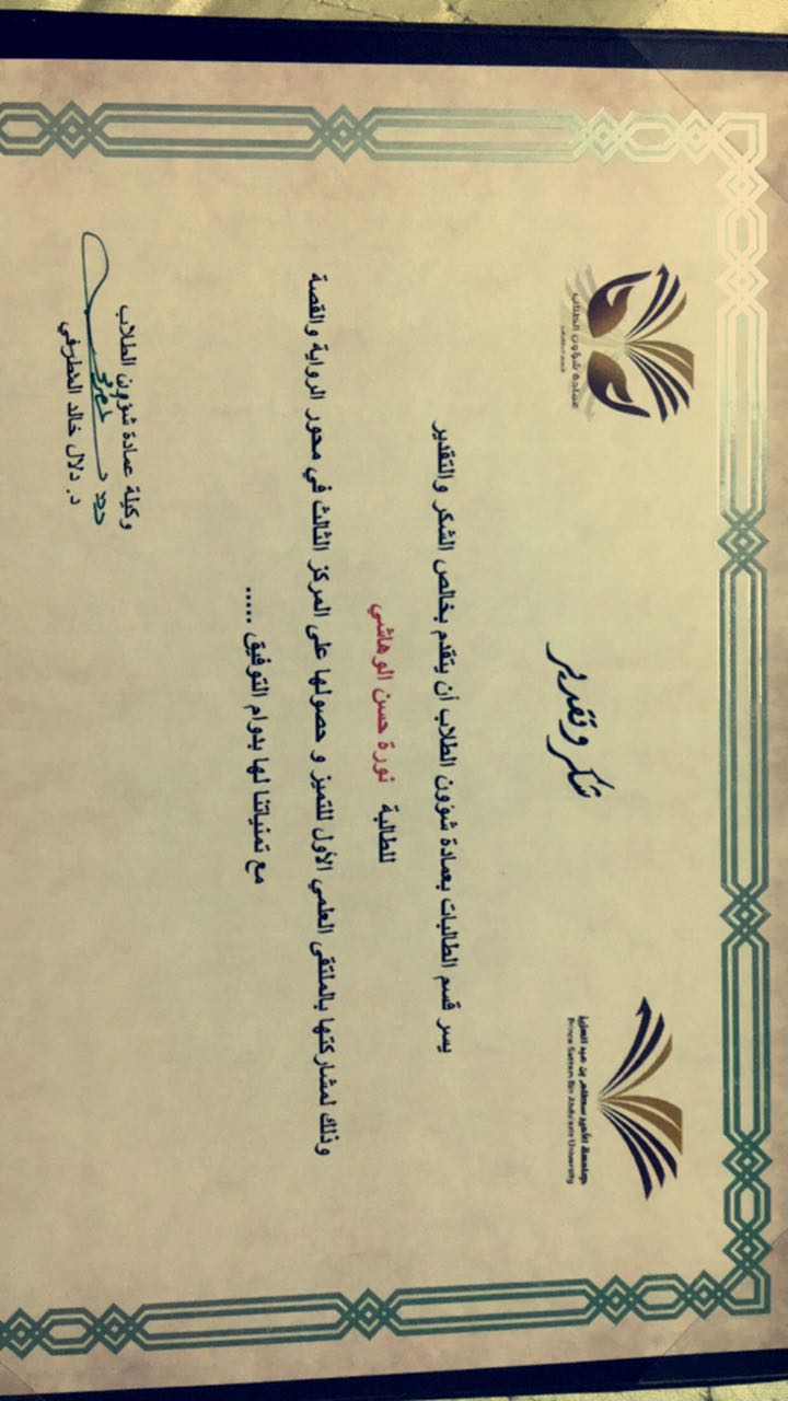 محور القصة والرواية الطالبة/ نورة الوهاشي المركز الثالث