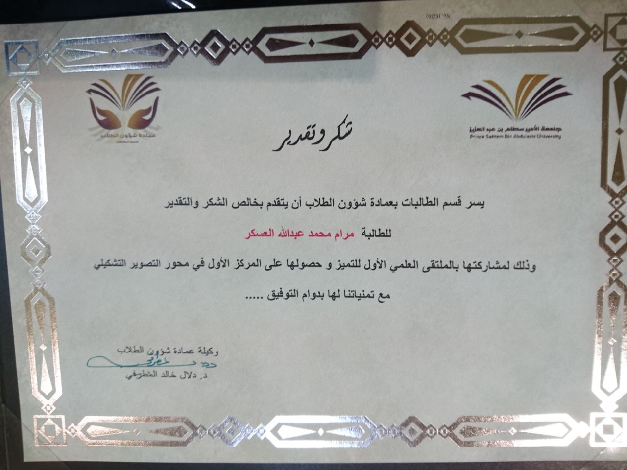محور التصوير الضوئي الطالبة/ مرام العسكر المركز الأول