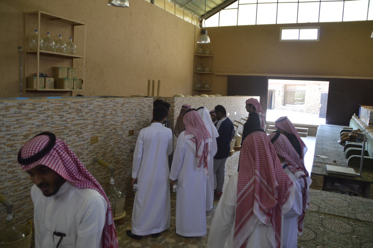حيث توجه الوفد الطلابي فور وصولهم لمدينة الطائف لزيارة مزارع الورد وإنتاج العسل في شفاء الطائف للأستاذ عبدالله بن ساعد الطلحي , تعرف الوفد خلال الزيارة قصة كفاح مالك المزرعة , والكميات التي تنتجها المزرعة من الورد الطائفي والعسل . وكيفية إنتاجها والمراحل التي تمر بها.