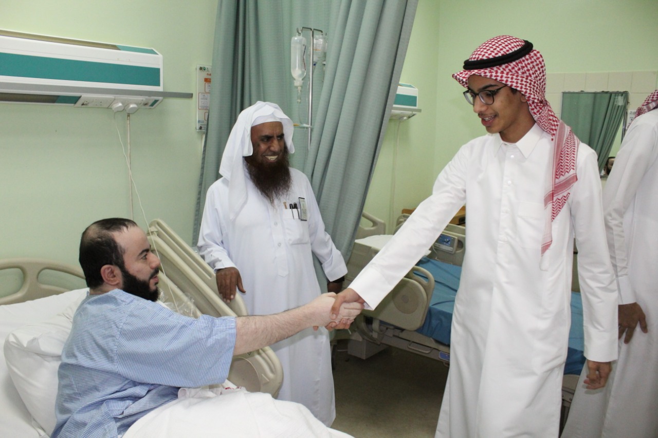وأضاف الدوسري أن زيارة المرضى من الأهداف الإنسانية للكلية وتحقيقاً للأهداف التربوية ومن بينها غرس الأعمال الخيرة في نفوس الطلاب وتوثيق صلتهم بالمرضى ، وإدخال البهجة في نفوسهم .