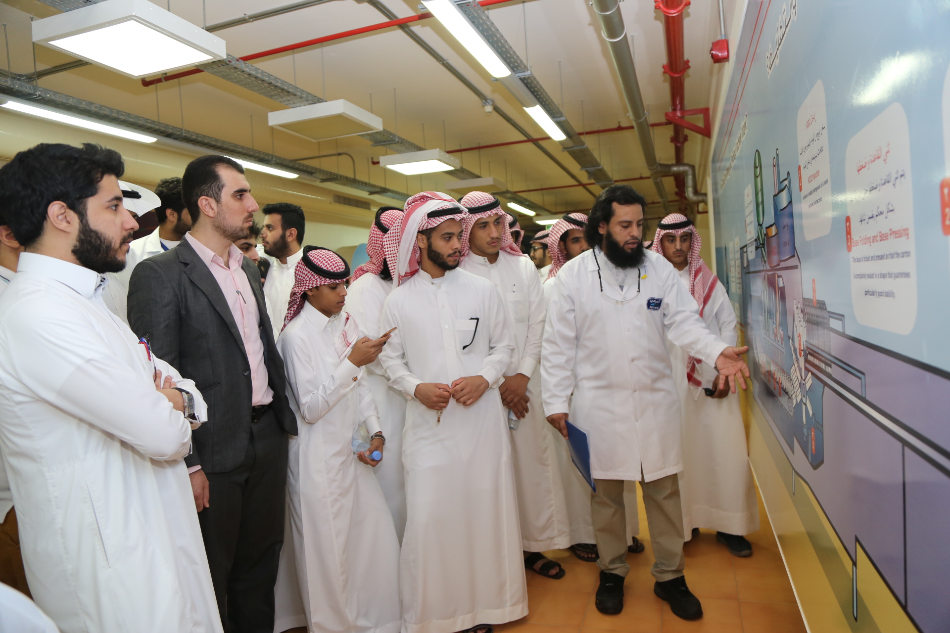 وقد تضمنت الزيارة التعرف على العديد من الأقسام ، حيث تنوعت أقسام الإنتاج ومراحل الإنتاج، فكان قسم العصائر، والحليب بأنواعه، والجبن، حتى تصل إلى التعبئة والتوزيع، واطمأن الجميع لمستوى النظافة في المصنع، إضافة إلى قسم المعجنات بأنواعها، وكيف تطورت حتى أضحت من الشركات المعروفة على مستوى المنطقة في إنتاج الألبان ومشتقاتها، والمخبوزات (اللوزين، والسفن دايز)، إضافة إلى العصائر والمنتجات المتعلقة بها، والزبادي والحلويات، والدواجن، وتم عرض فيلم وثائقي يلخص نشاط الشركة وكل ذلك مدعم بالأرقام، ومن اللافت أن الشركة توزع يوميا 400 شاحنة مزودة بمنتجات الشركة، لتنتهي بعدها الزيارة بتقديم درع شكر وتقدير لشركة المراعي نيابة عن عميد السنة التحضيرية الدكتور مشاري بن عياد العصيمي؛ على ما قدموه من خدمات متميزة لإنجاح هذه الزيارة والتي عادوا منها محملين بفوائد جمة وربط ذلك بما يتلقون من تعليم.