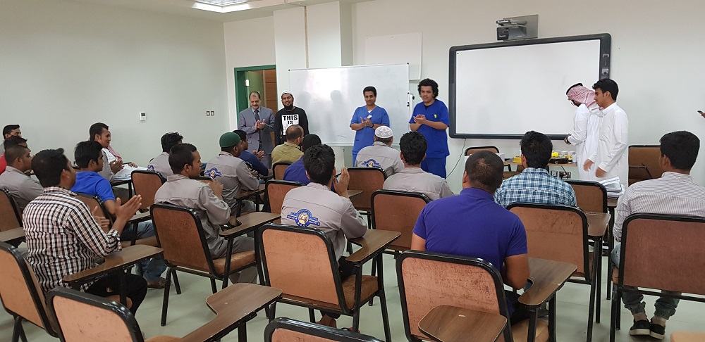 ضمن المبادرات الطلابية التطوعية المدرجة ضمن خطة وبرامج وحدة الأنشطة الطلابية بعمادة السنة التحضيرية ، وبهدف إدخال السرور عليهم ، وبث رسالة لهم مفادها : أننا نقّدر جهودكم . قام مجموعة من طلاب المسار الصحي بعمادة السنة التحضيرية اليوم الأحد: 27/ 1/1440هـ بإعداد وتنفيذ برنامج لعمال عمادة السنة التحضيرية ، واحتوى البرنامج على رسالة شكر لهم ، ومسابقة ترفيهية وتقديم الحلوى والفاكهة والعصائر لهم.