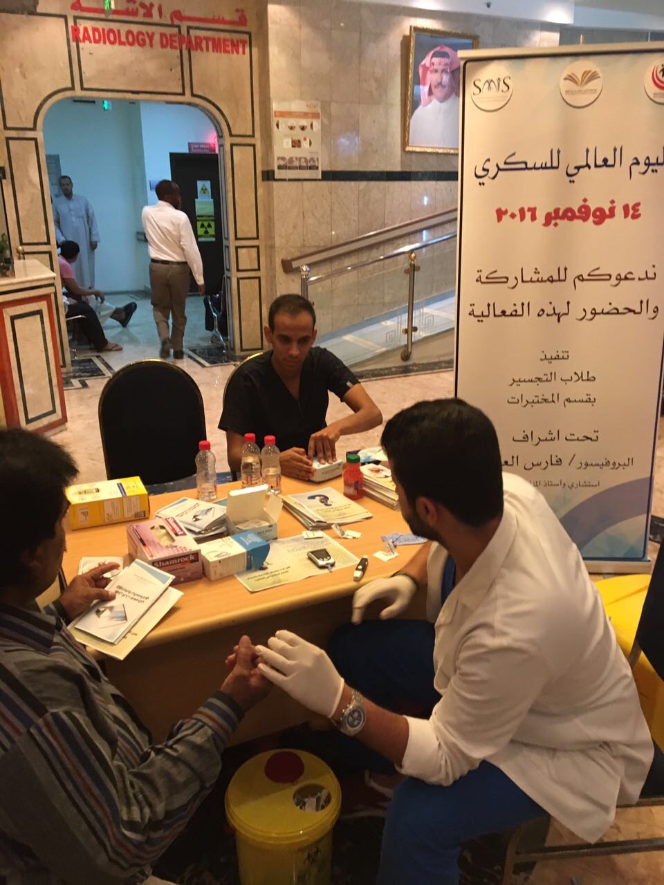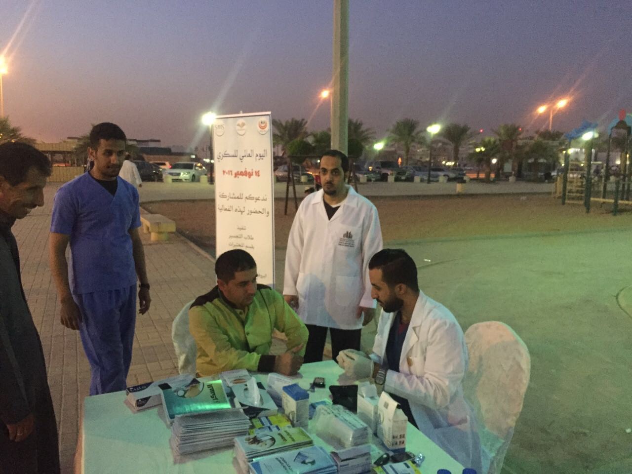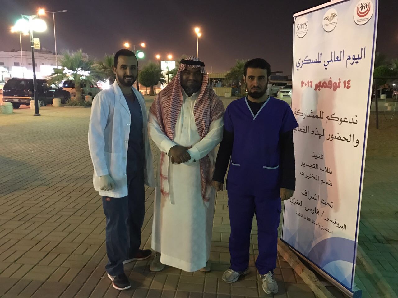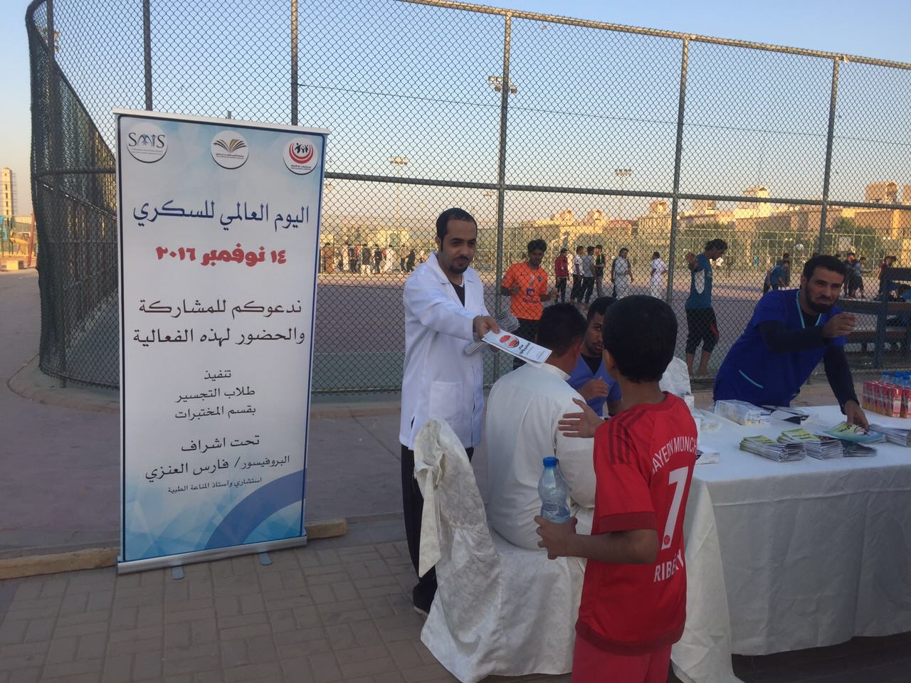 نظمت كلية العلوم الطبية التطبيقية بجامعة الأمير سطام بن عبدالعزيز بالخرج بالتعاون مع شريكنا بالنجاح مستشفى دار الشفا الأهلي و الجمعية السعودية للمناعة والحساسية يوما توعوياً للمجتمع بمناسبة اليوم العالمي للسكر الذي يصادف اليوم الموافق ١٤ نوفمبر من كل عام، وقد قام على تنفيذ الفعالية طلاب قسم التجسير بقسم المختبرات الطبية و اشرف عليها البروفسور فارس العنزي استشاري و أستاذ المناعة الطبية، و أقيمت الفعالية بعد صلاة العصر لمدة ٥ ساعات في الممشى بحي الصفوة بشرق الرياض وكذلك بمستشفى دار الشفا، وزعت خلالها مطويات توعوية عن السكر و تم قياس نسبة السكر لدى الحضور، و شهدت حضورا و تفاعلا من الجمهور.