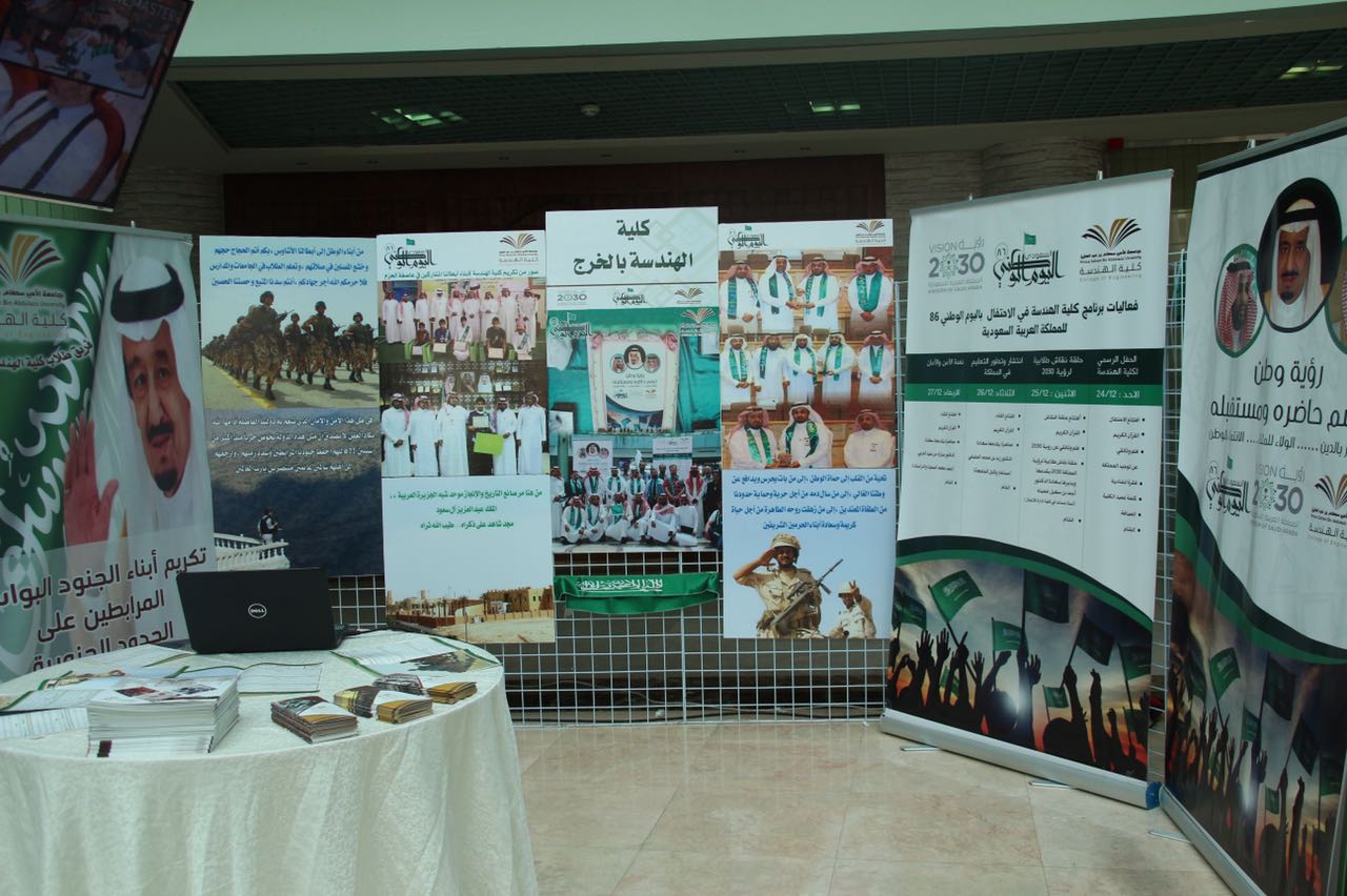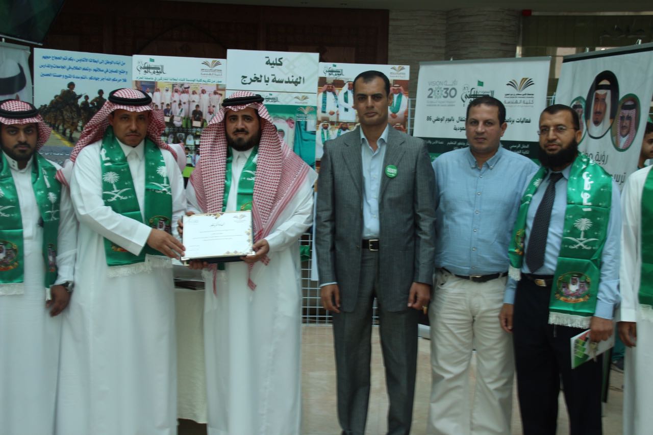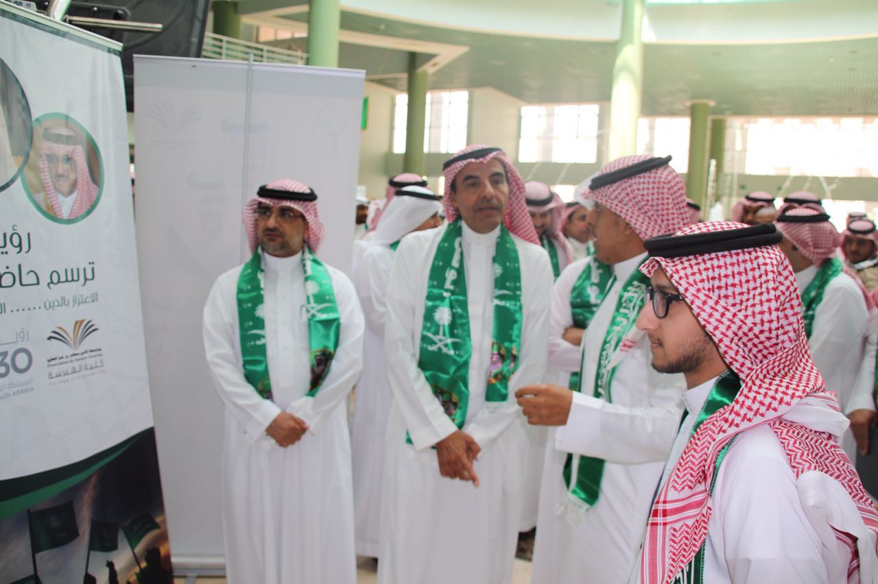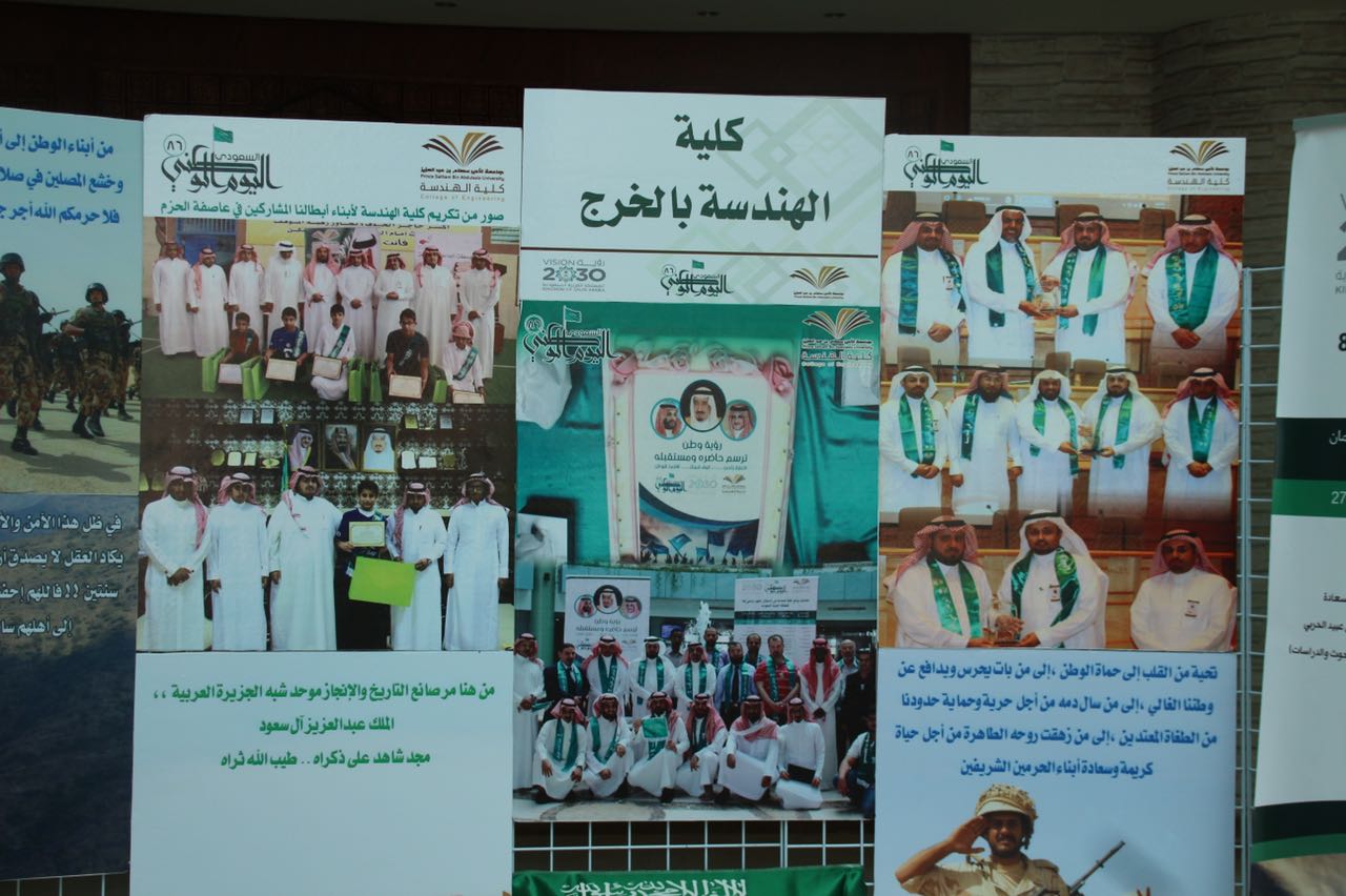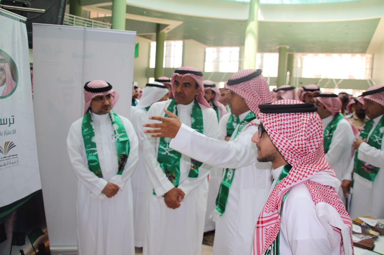شاركت كلية الهندسة في معرض الجامعة المصاحب للاحتفال باليوم الوطني الذي نظمته عمادة شؤون الطلاب وكان برعاية كريمة من معالي مدير الجامعة الدكتور عبدالرحمن بن محمد العاصمي وحضور كبير لاصحاب السعادة الوكلاء والعمداء واعضاء هيئة التدريس وكبار الموظفين والطلاب. واشتمل معرض الكلية على العديد من الصور التي تبرز فعاليات كلية الهندسه بمناسبة اليوم الوطني والتي امتدت الى أربعة أيام خلال الأسبوع الماضي استضافت فيها الكلية العديد من المتحدثين المتخصصين في عدد من المجالات بما يسلط الاضواء على سيرة ومسيرة المؤسس والتأسيس لهذه البلاد الغالية. وجرى خلال الاحتفال تكريم كلية الهندسة لمشاركتها المميزه في احتفاليات اليوم الوطني وكذلك المعرض المصاحب حيث سلم معالي مدير الجامعة شهادة التكريم لسعادة عميد الكلية الدكتور محمد بن سعيد القحطاني. كذلك خلال الحفل تم الأعلان عن الفائزين في مسابقة رؤية وطن التي اطلقتها عمادة شؤون الطلاب وتميز طلاب الكلية بحصولهم على عدد من جوائز المسابقة حيث حصل الطالب معاذ بن محمد الثنيان على المركز الأول في مسابقة صورة معلم وطني مع تعليق مناسب. واما مسابقة صورة ورسالة لجنود الوطن المرابطين فقد حصل طلاب الكلية عبدالعزيز بن علي آل رشيد وزياد بن عبدالرحمن الزهراني على المركز الثاني والثالث على التوالي. وفي نهاية الحفل شرف معالي مدير الجامعة وقيادات الجامعة ركن الكلية بالمعرض واطلعوا على فيلم وثائقي عن فعاليات احتفالها باليوم الوطني وكذلك العديد من الصور الفوتوغرافية ومشاركات الطلاب الفائزة في مسابقة رؤية وطن.