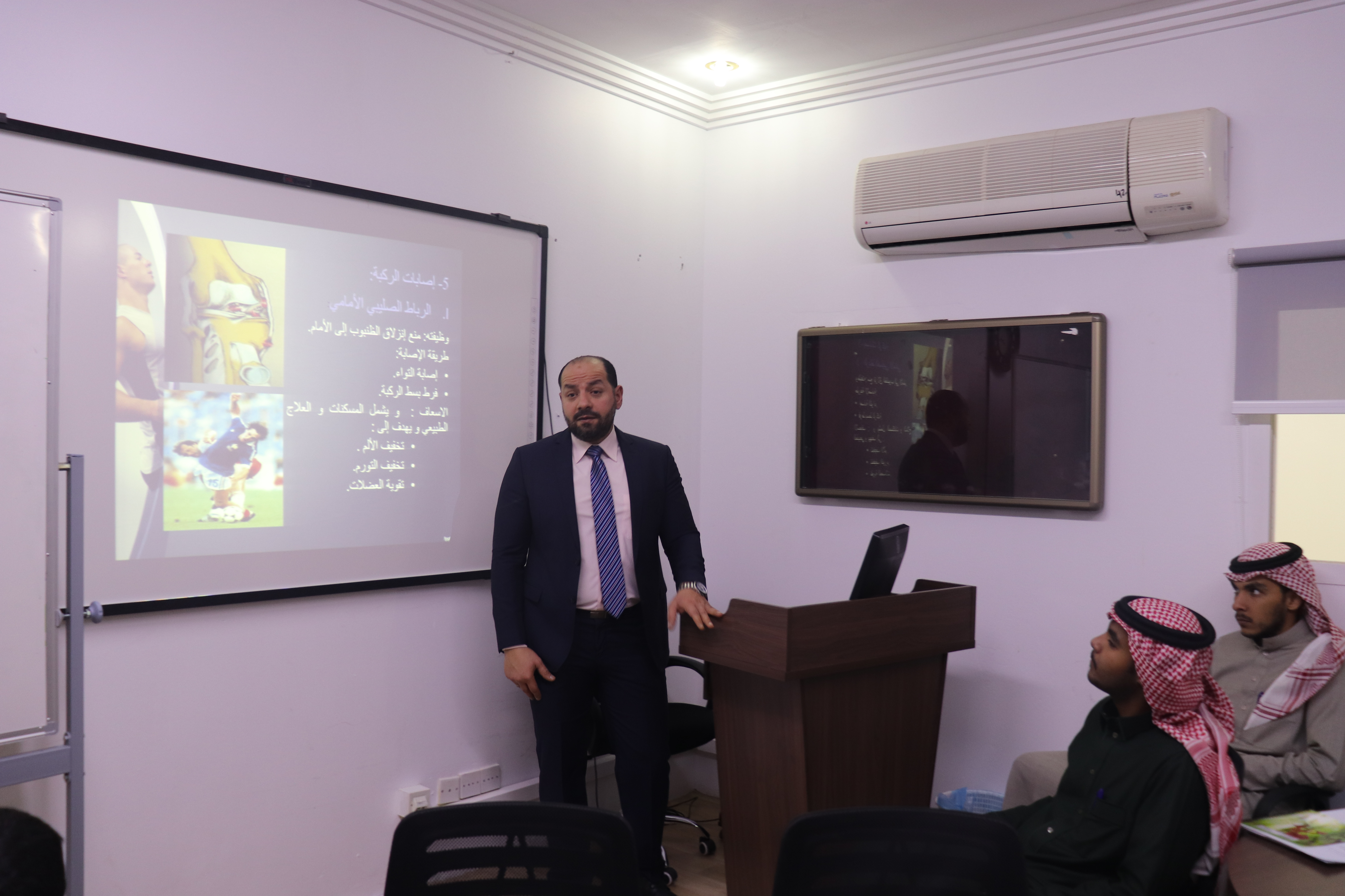 حرصًا من كلية المجتمع بالخرج وتنفيذًا لتوجيهات سعادة عميد الكلية د. حمد بن عبدالله القميزي بأهمية تهيئة بيئة مناسبة للطلاب لممارسة الرياضة مع تنظيم برامج توعوية لهم عن بعض الإصابات الرياضية الشائعة وطرق الوقاية منها نظمت وحدة خدمة المجتمع بالكلية ورشة عمل بعنوان" الإصابة الرياضية وطرق الوقاية منها" قدمها سعادة الدكتور/ تامر إمام النجمي الاستاذ المساعد بكلية العلوم الطبية التطبيقية بالخرج وذلك يوم الخميس الموافق 12/6/1441هـ