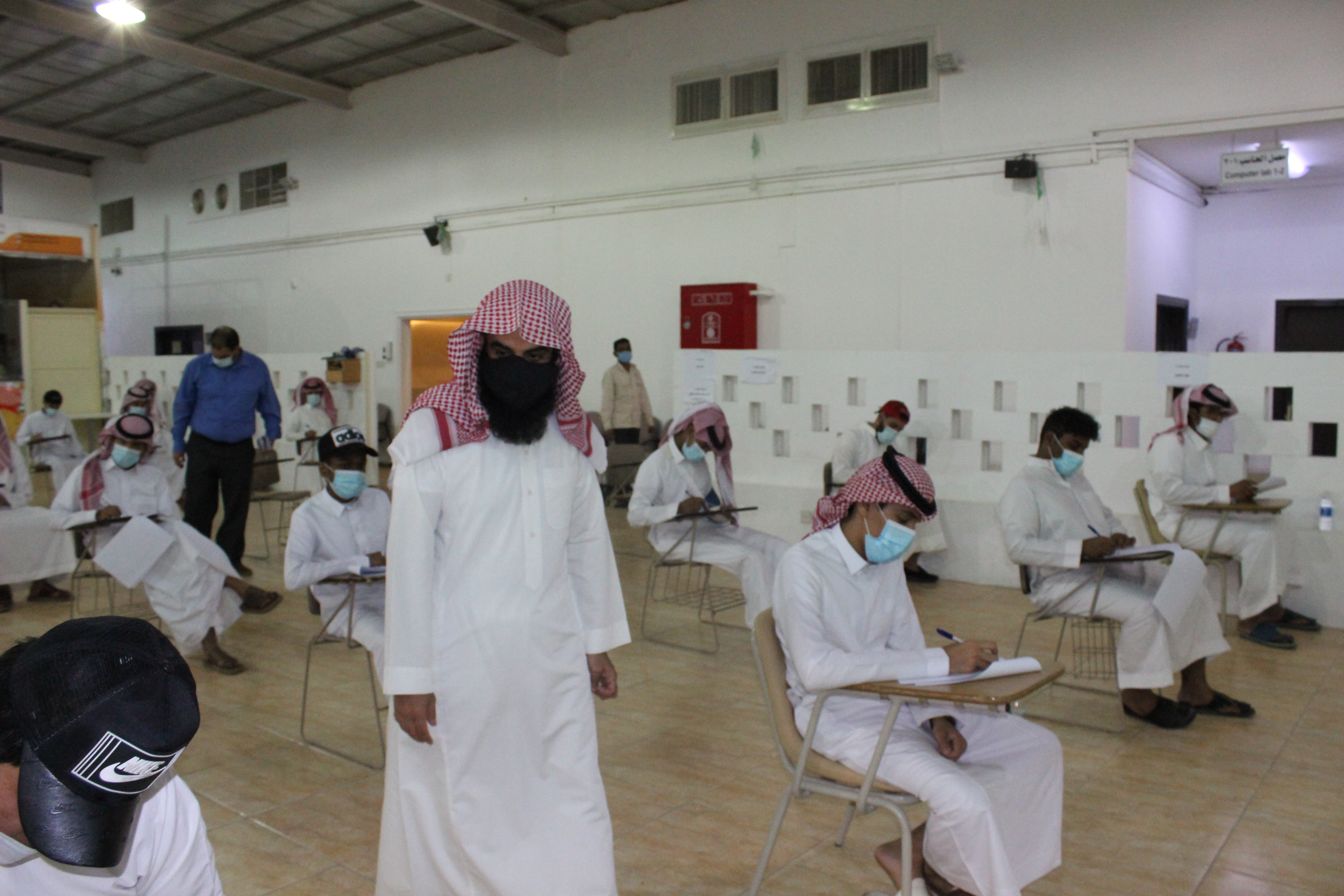 تابع سعادة عميد كلية المجتمع بالخرج د. حمد بن عبدالله القميزي صباح يوم الأحد الموافق 16/2/1442هـ سير التجهيزات المعدة لاستقبال الطلبة في الاختبارات الفصلية؛ والتي وجه بها سعادته سابقاً، ووقف على ما تم عمله واتخاذه من إجراءات احترازية للوقاية من فيروس كورونا بين أبنائه الطلاب.