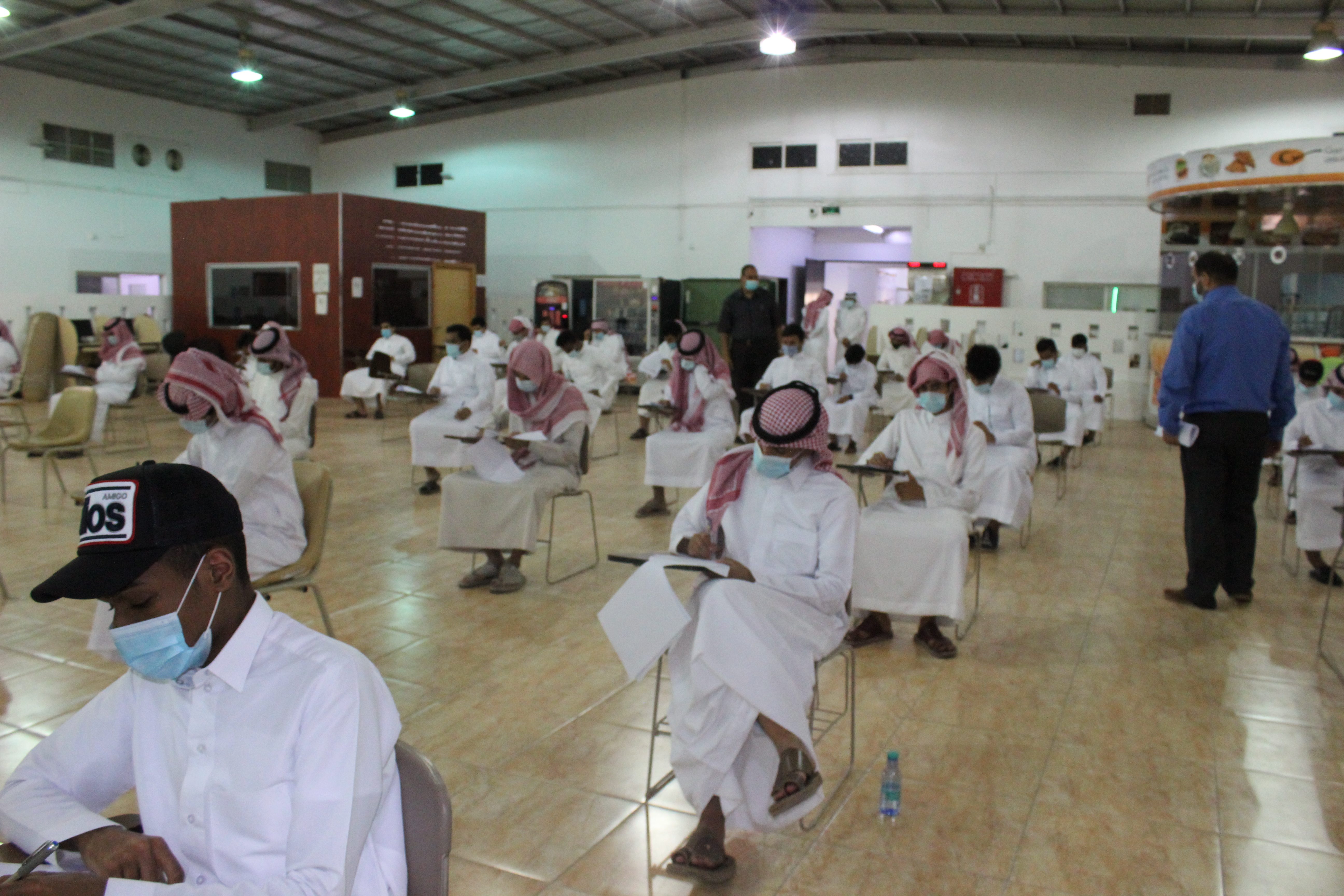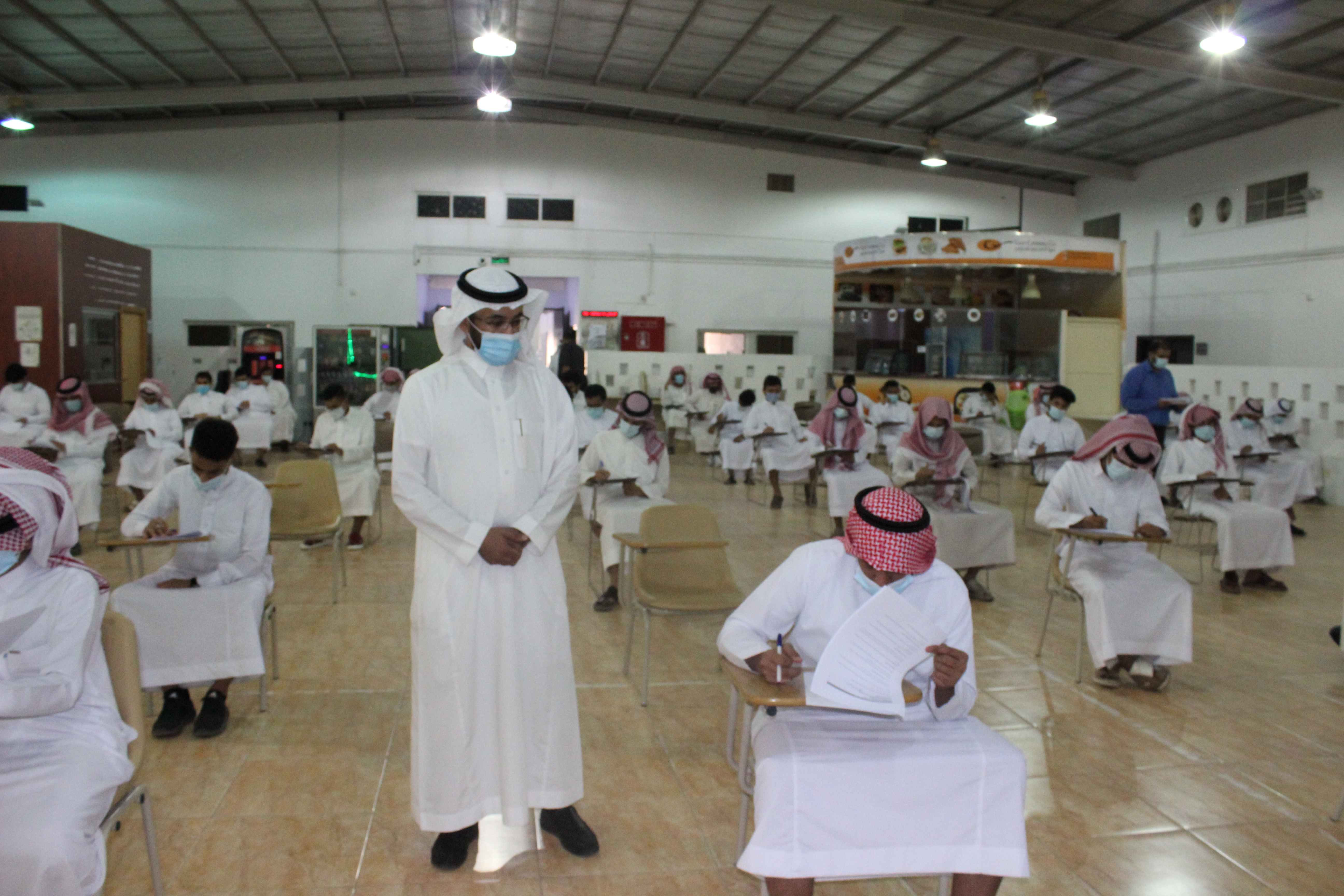 وجرى ذلك خلال زيارته للقاعات المعدة لذلك وأثناء تواجد الطلاب لأداء الاختبارات، حيث يؤدي ما يقارب (80) طالباً الاختبار في يومه الأول، والذي يستمر لمدة أسبوع وبضعة أيام على ثلاث فترات لتمكين الطلبة من استمرار العملية التعليمية من خلال متابعة محاضراتهم عن طريق البوابة الإلكترونية، حيث روعي إعطاء الطلبة وقتاً كافياً للعودة إلى منازلهم ومتابعة محاضراتهم.