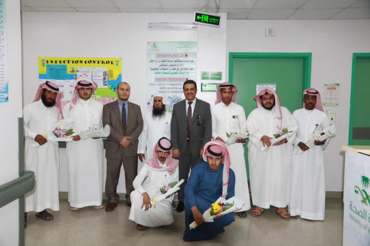 بتوجيه من عميد كلية التربية بوادي الدواسر د. ماجد بن علي الشريدة نظمت وحدة الأنشطة الطلابية بالتعاون مع وحدة خدمة المجتمع زيارة طلابية لمستشفى وادي الدواسر العام، وذلك يوم الأحد الموافق 1441/4/4هـ يصحبهم مشرف الأنشطة الطلابية الدكتور / محمد حسن الأبيض ومشرف وحدة خدمة المجتمع الدكتور/ محمد سيد عبد اللطيف حيث تم استقبال الطلاب وأعضاء هيئة التدريس المرافقين من قبل إدارة العلاقات العامة ومدير إدارة التوعية الدينية الأستاذ مبارك بن عبد الله السعيد الذي رحب بالوفد أجمل ترحيب ، واصطحابهم لزيارة الأقسام التي يتواجد فيها المرضى المنومين ، وبين السعيد أهمية تطبيق سنة الرسول صلى الله عليه وسلم في زيارة المرضى وما لها من دور في إدخال السرور على المرضى والتخفيف من آلامهم واحتساب الأجر والثواب في ذلك.