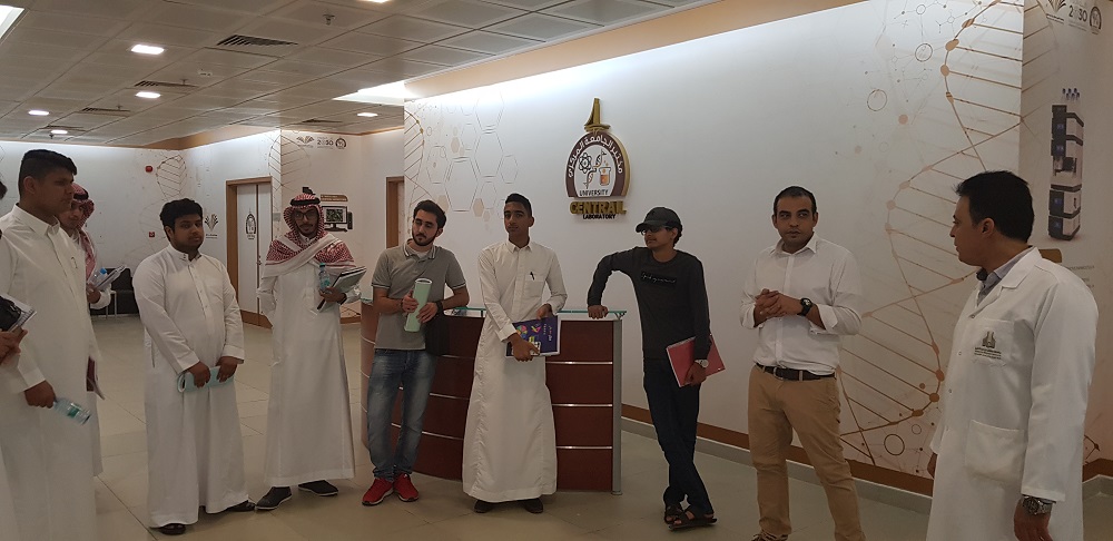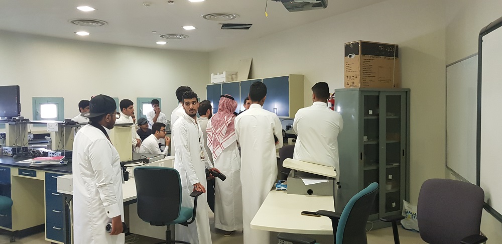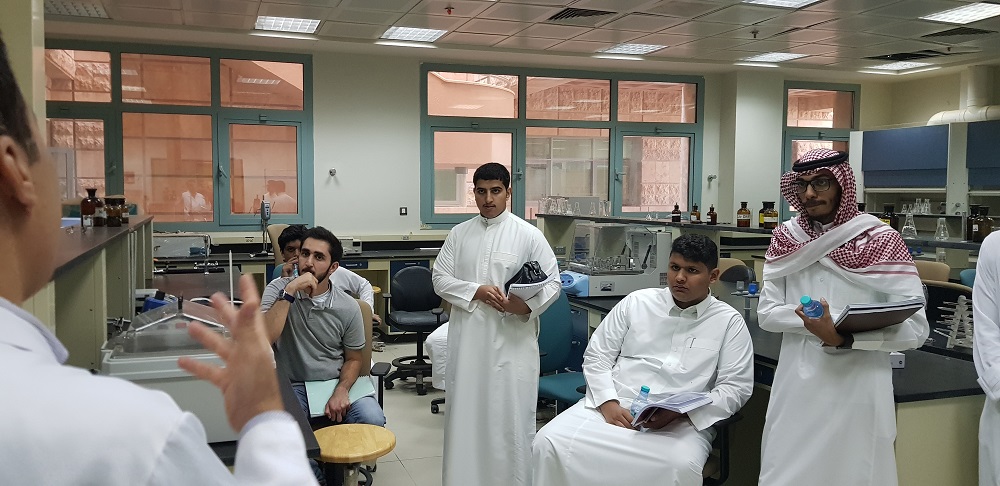 عقب ذلك توجه الطلاب إلى قسم الكيمياء ، فتناول الطلاب نبذة عن القسم من خلال الاطلاع على المعامل المتوفرة في القسم كمعامل الكيمياء التحليلية والعضوية وغيرها ، ثم انتقل الطلاب إلى مختبر الجامعة المركزي ، وكما تم أثناء الزيارة الحديث عن أهمية الكيمياء، ودورعا في الحياة اليومية بالإضافة إلى مجالاتها.
