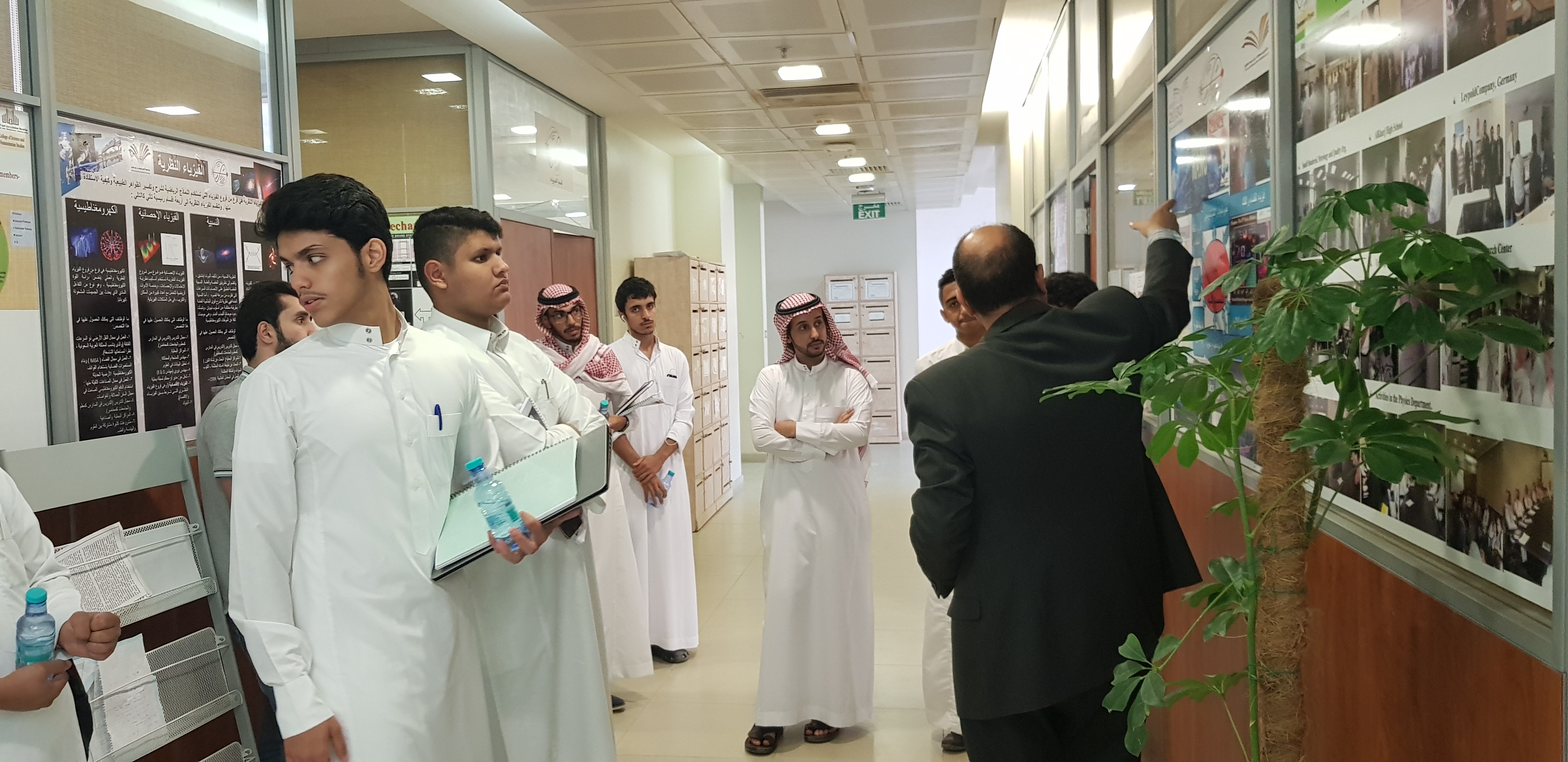 فبعد الاستقبال تم توجيه الطلاب إلى قسم الفيزياء والتعريف به والتخصصات المتاحة فيه فاطلع الطلاب على مختبر الكهرومغناطيسية ، ومختبر الفيزياء النووية، ومختبر البصريات ، كما تعرف الطلاب على تخصصات الفيزياء المتاحة .