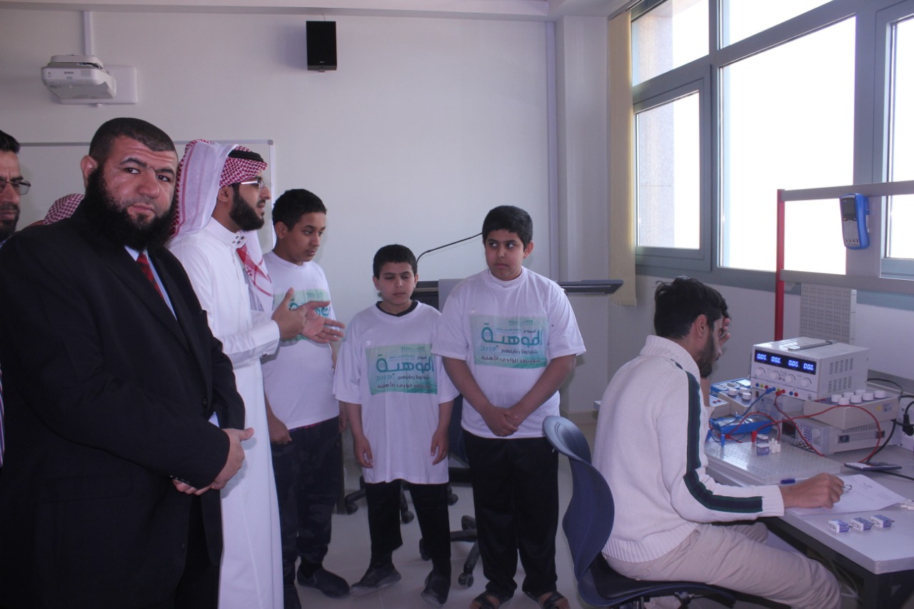 وتخلل الجولة شرح تعريفي من قبل الدكتور / يوسف الدرادكه ، عن المواقع المستهدفة في مسار الزيارة وتقديم المعلومات الوافية عن التخصصات المفعلة بالكلية حيث ذكر قسم هندسة الحاسب الآلي والشبكات والهندسة الميكانيكية وخص بالذكر قسم الهندسة الكهربائية والاعتماد الأكاديمي الذي حققته كلية الهندسة عالمياً من قبل هيئة الاعتماد الأمريكي لبرامج الهندسة والتقنية ( ABET ) ، ثم قام بإعطاء نبذة عن الموجات الكهرومغناطيسية واستخدام الموجات اللاسلكية في التحكم في الاجهزة الكهربائية ؛ في أحد القاعات الدراسية ، ثم بعد ذلك أستمتع الطلاب بمشاهدة بعض التجارب الكهربائية وتطبيقها عملياً مع المهندس / فيصل ، المحاضر في الكلية الهندسة في معمل القياسات الكهربائية .