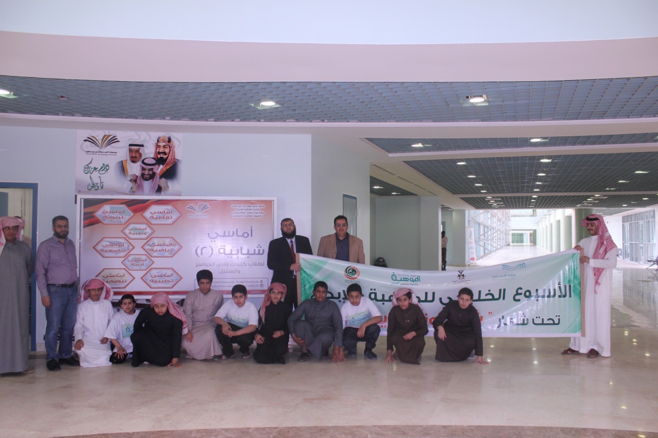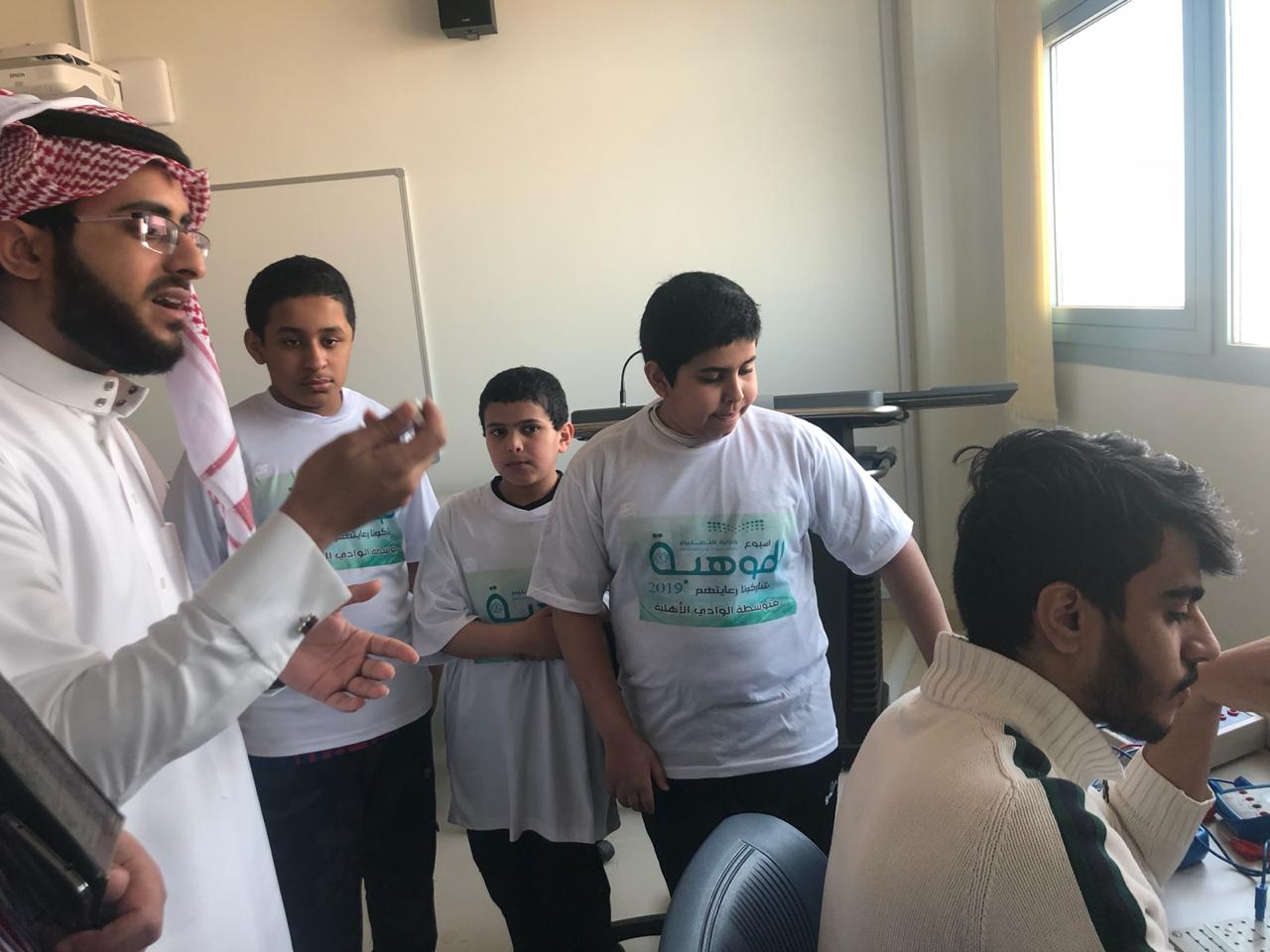 ضمن عقد الشراكة المجتمعية المبرم بين كلية الهندسة بوادي الدواسر ومدارس الوادي الأهلية وفي إطار تفعيل أسبوع الموهبة الخليجية ، استقبلت كلية الهندسة طلاب مدرسة متوسطة الوادي الأهلية يوم الخميس بتاريخ 1440/6/30هـ ، وكانت الطلاب برفقة كلا من الاستاذ / جاسر محمد عطاالله ، منسق الموهوبين بالمدرسة ،والاستاذ / محمد بن منير آل سالم ، المرشد الطلابي في المدرسة .