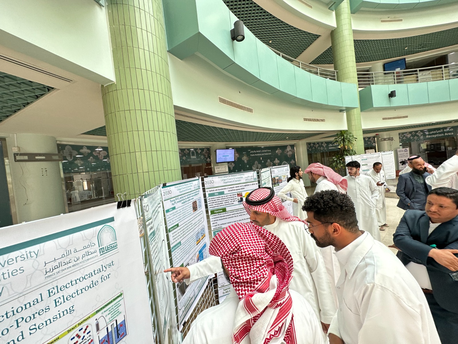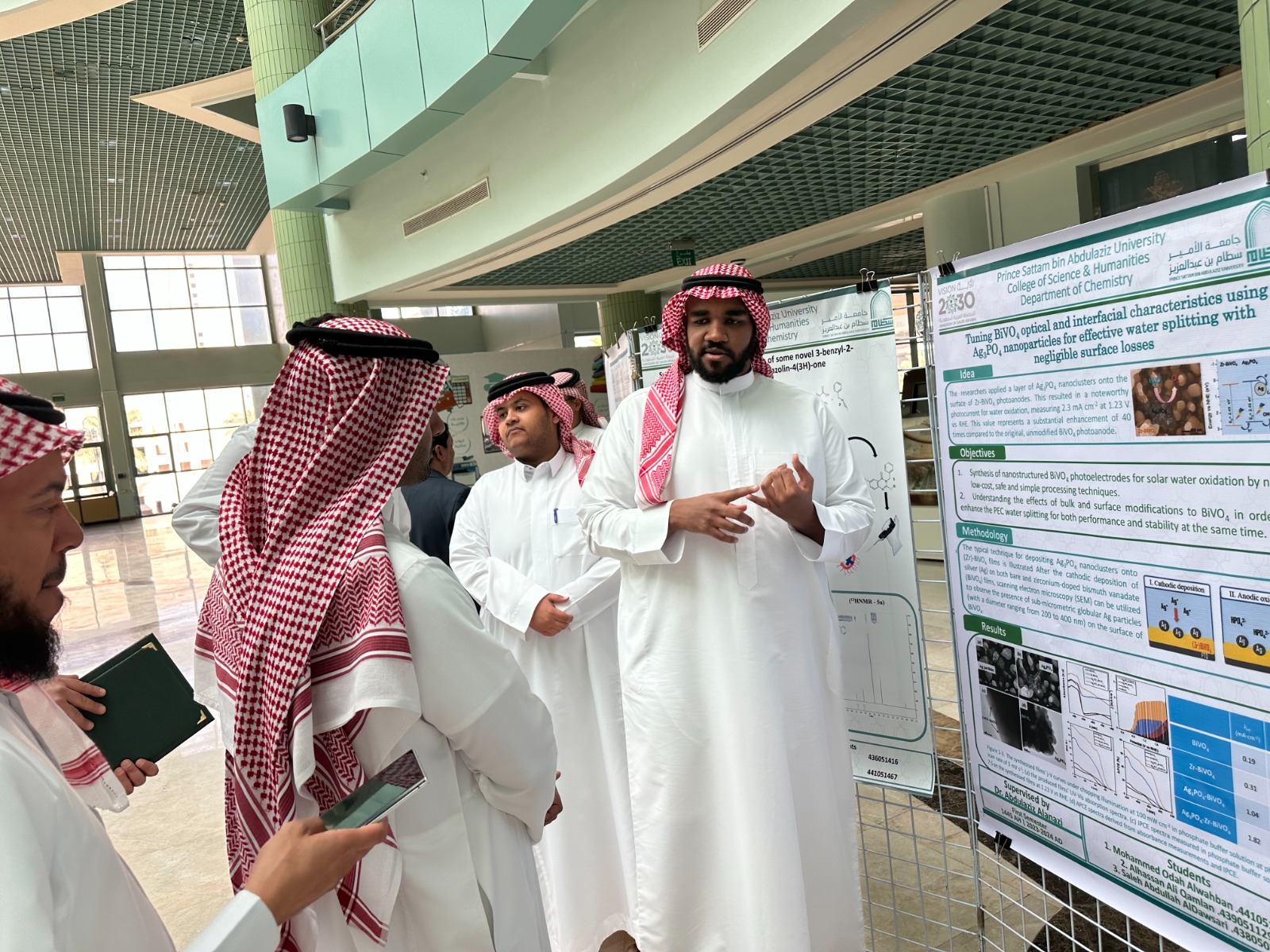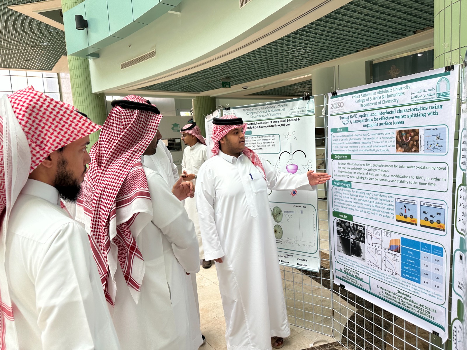 شارك طلاب مشروع البحث بقسم الكيمياء في كلية العلوم والدراسات الإنسانية بالخرج بفعالية يوم الملصقات (Poster Day) التي أقيمت يوم الأربعاء الموافق 29-11-2023 م ببهو كلية العلوم والدراسات الإنسانية بشطر الطلاب برعاية من سعادة عميد الكلية الدكتور عبد الرحمن بن إبراهيم الحارثي.