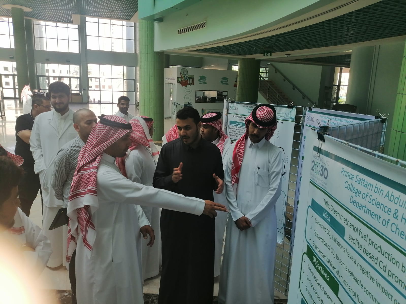 ولقد قام الطلاب بعرض محتوى مشاريعهم في صورة ملصقات أمام سعادة عميد الكليه والسادة الوكلاء وبعض أعضاء هيئة التدريس من مختلف أقسام الكلية وقام الطلاب بالرد على أسئلة وإستفسارات الحاضرين.