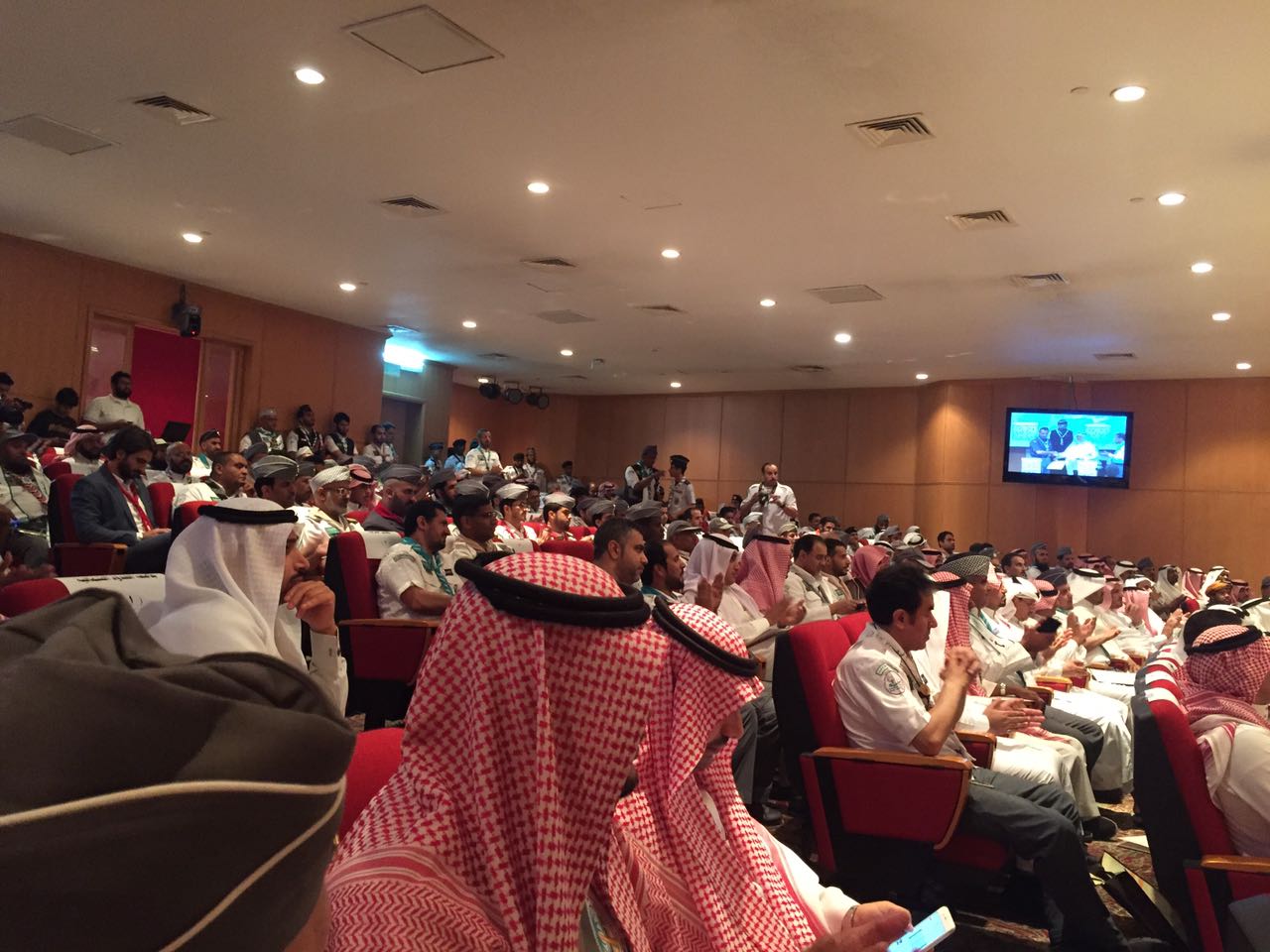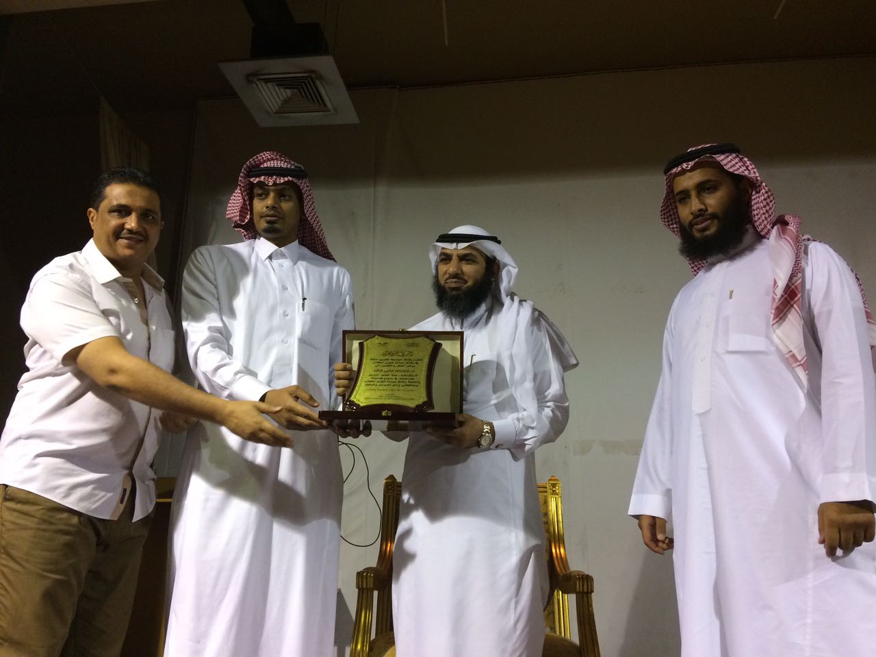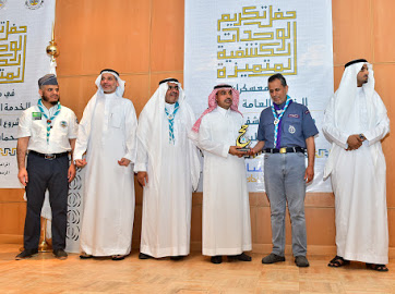 وبعد صلاة التراويح في يوم الخميس كانت هناك دعوة لوفد جامعة الأمير سطام بن عبدالعزيز للفروع لحضور حفل تكريم الوحدات الكشفية المتميزة في معسكرات الخدمة العامة 1437هـ والمشروع الكشفي الوطني لحماية البيئة (9) ، وقد حصلت جامعة الأمير سطام بن عبدالعزيز على تكريم بهذا الحفل حيث حققت جامعة الأمير سطام بن عبدالعزيز درع التميز في معسكرات الخدمة العامة بالحج لعام 1437هـ استلمه عميد شؤون الطلاب الدكتور ثلاب بن عبدالله الشكرة ، بعد الحفل تشرف وفد الجامعة بلقاء مع الشكرة تخلله كلمة توجيهية وتشجيعية للمشاركة في مثل هذه المحاضن ، بعد ذلك قدم الوفد شكرهم لدكتور ثلاب لدعمه وحرصه على مثل هذه المناشط . والتقطت معه الصور التذكارية .