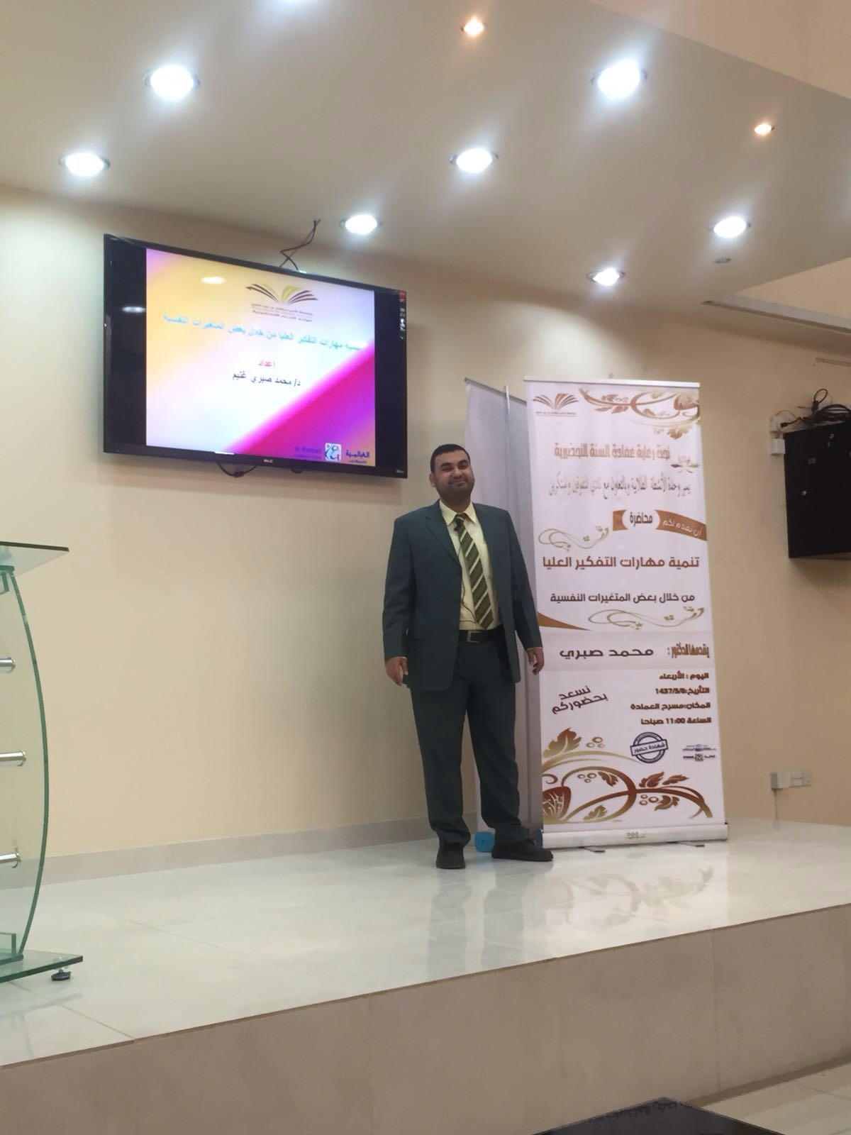 قدم الدكتور محمد غنيم صبري دورة تدريبية بعنوان ( تنمية مهارات التفكير العليا من خلال بعض المتغيرات النفسية) تأتي هذه الدورة ضمن فعاليات وأنشطة عمادة السنة التحضيرية وضمن الاستعداد للملتقى التحضيري للمؤتمر العلمي الطلابي السابع الذي سيقام في العمادة.