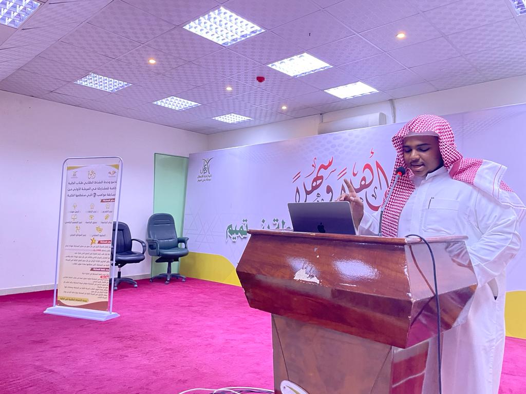 هذا وقد تنافس عدد من طلاب الكلية في محاور متعددة من محاور المسابقة، وقدّم كل متسابق منهم مشاركته أمام لجنة التحكيم والحضور. واستمع بعد ذلك إلى ملحوظات اللجنة وتوجيهاتها تُجاه مشاركته.