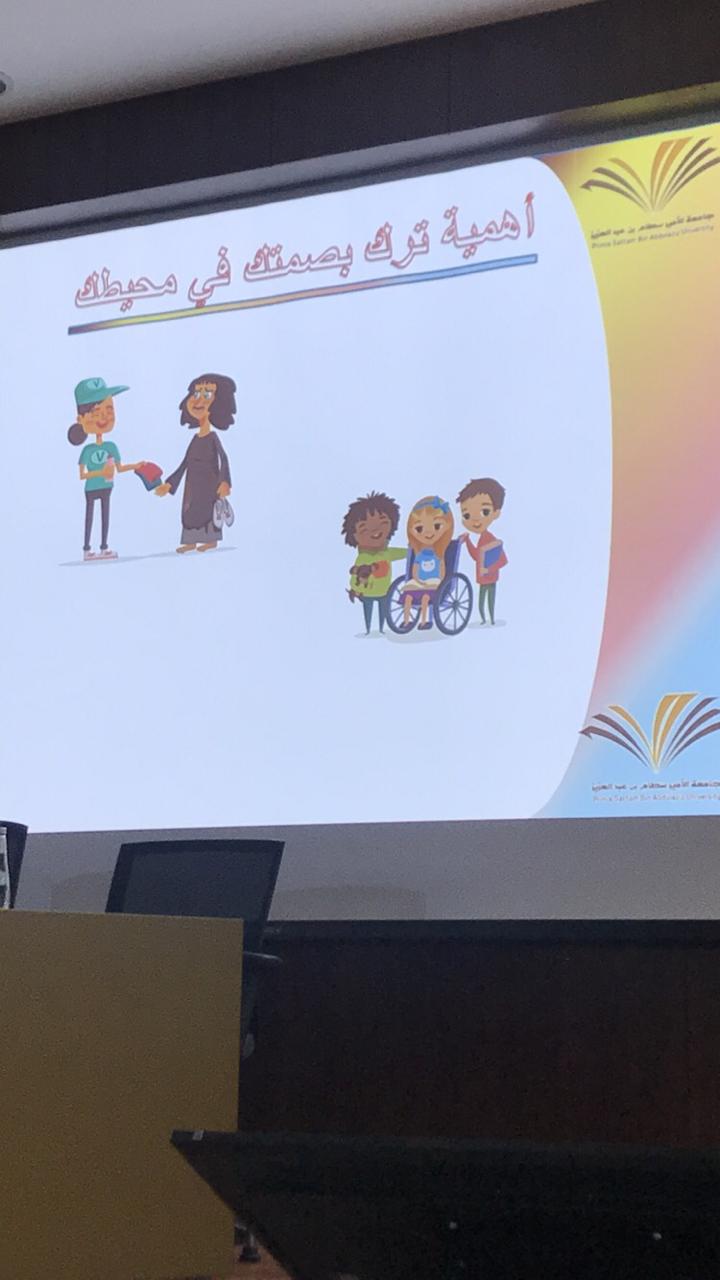 - في يوم الاثنين الموافق 22/5/1440هـ انطلاقًا من تحضير الطالبات للملتقى العلمي الثالث في محور المبادرات التطوعية تم تقديم دورة بعنوان (كيف تتركين بصمتك في مجتمعك) قدمتها الدكتورة فرح رضوان حيث تحدثت فيها عن معنى المبادرات التطوعية وأهميتها وفرص المبادرات وبعض الأمثلة على المبادرات وشارك الطالبات بذكر قصص تركت بصمة في حياتهم وكان في ختام الدورة توزيع استبانات لتقييم الدورة واتضح مدى الاستفادة منها.