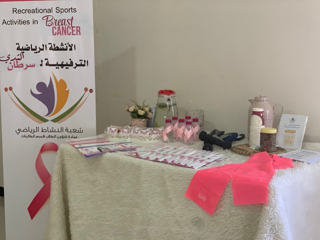 تفعيلاً للوعي الصحي للوقاية من سرطان الثدي وتزامناً مع شهر اكتوبر العالمي للتوعية بسرطان الثدي ، أقامت كلية العلوم الطبية التطبيقية -شطر الطالبات- تحت إشراف وكلية الكلية د. نورة الضعيان حملة تثقيفيه يومي الاربعاء والخميس 23-24 /10 / 2019 م بالتعاون مع جمعية زهرة لسرطان الثدي ممثلة بالأستاذة منيرة القاسم ممثلة وزارة الصحة وعضوة جمعية زهرة ، وبمشاركة المجلس الطلابي والاندية الطلابية (نادي العلاج الطبيعي-نادي المختبرات الطبية-نادي التمريض-نادي الأشعة الطبية) حيث بدأ الحفل بالسلام الملكي السعودي تبعه تلاوة من القرآن الكريم بعدها كلمة لوكيلة الكلية د. نورة الضعيان بعدها قامت أ.منيرة القاسم بتقديم محاضره توعوية عن الوقاية من سرطان الثدي ثم عرضت مسرحية من قبل الطالبات هدفت الى التوعية والتثقيف بأهم الاعراض وطرق الكشف المبكر على سرطان الثدي وخطوات الفحص والعلاج المتعبة وطرق التأهيل بعد تلقي العلاج اللازم لحالات سرطان الثدي بعد ذلك تم عرض فيديو تثقيفي عن المرض ثم قامت د. نورة الضعيان بتكريم ممثلة وزارة الصحة وعضوة جمعية زهرة أ.منيرة القاسم، ثم افتتحت وكيلة الكلية د. نورة الضعيان الاركان المصاحبة للحملة تلى ذلك محاضرات تثقيفية من اقسام الكلية ..
