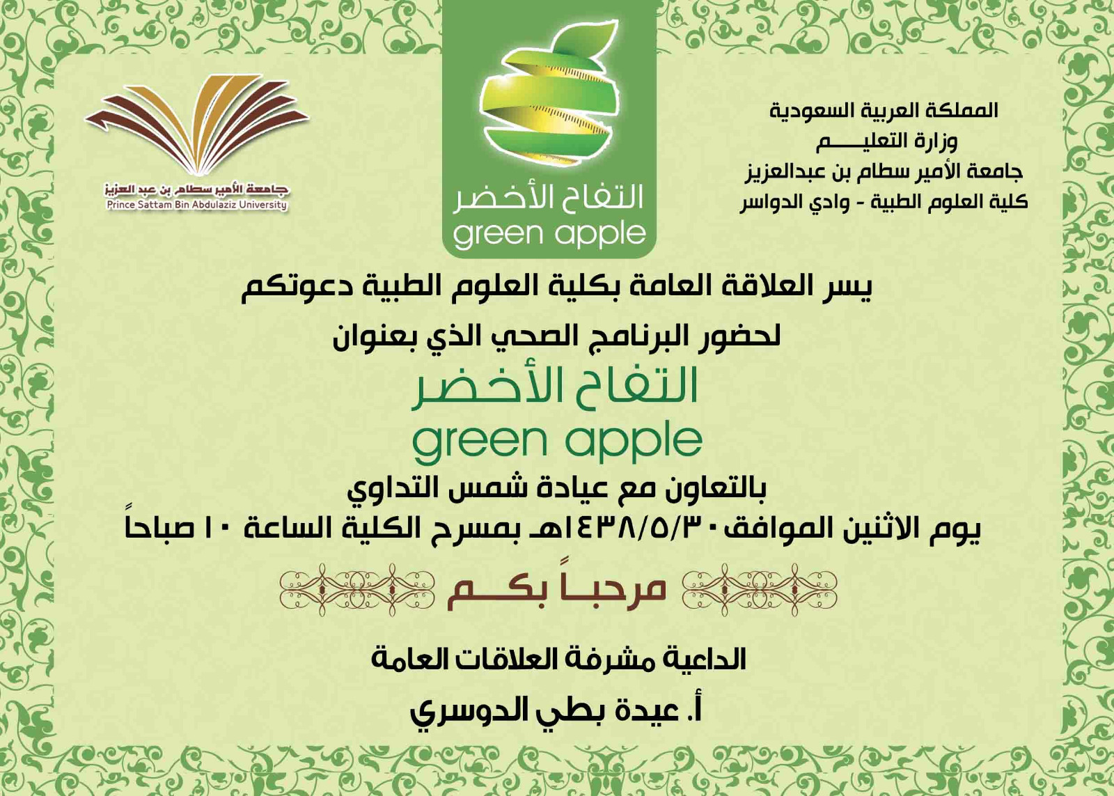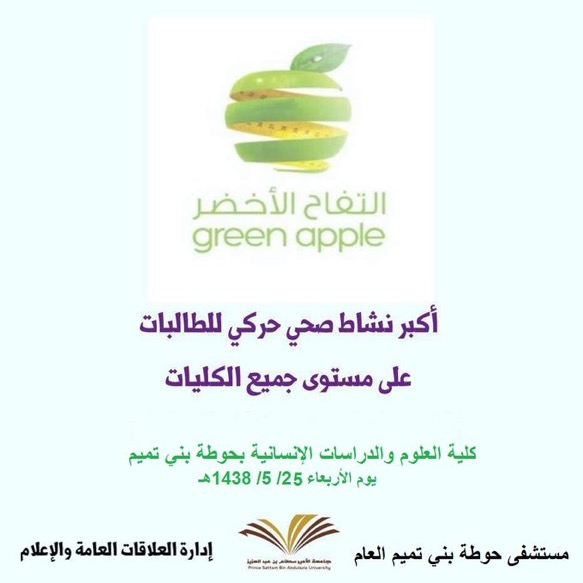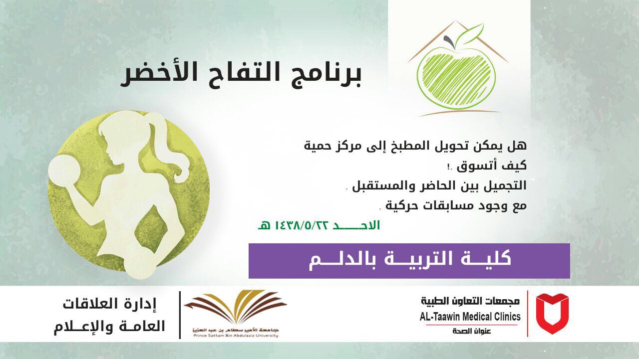 نقدم لكم تقرير مصور عن برنامج التفاح الأخضر المقام في كليات البنات.