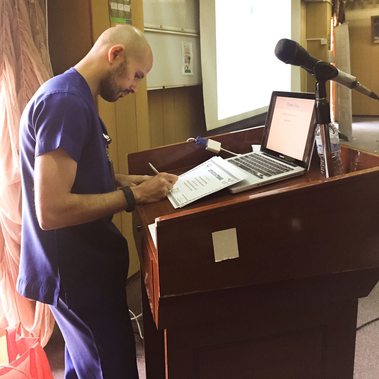 قام بإلقائها د/ نايف الردادي أخصائي علاج طبيعي أعصاب ، واشتملت الورشة على مقدمة نظرية رائعة عن مفهوم الاتزان وعوامل حفظ الاتزان وأهميته ثم قام بالتطبيق العملي على المشاركين من الذكور بكيفية اختبار مشاكل الاتزان وعرض فديوهات للمرضى المصابين بمشاكل الاتزان .