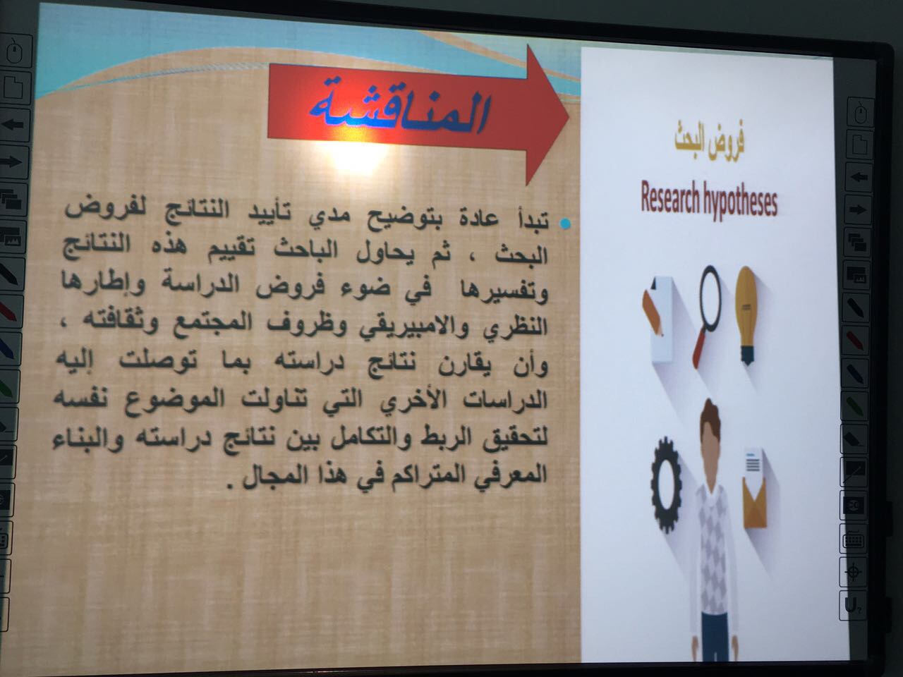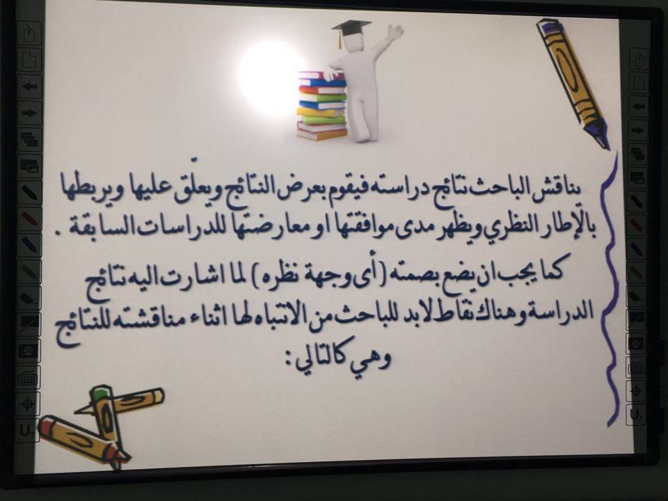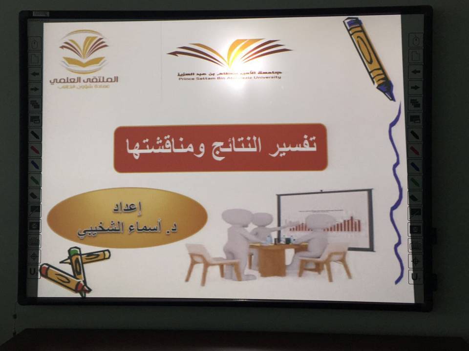 حيث تناولت د/ أسماء مصطفى الشخيبي – أستاذ مساعد بقسم علم النفس عدة محاور من أهمها كيفية مناقشة الباحث لنتائج دراسته وربطها بالإطار النظري، ووضع وجهة نظره فيها، كذلك تطرقت إلى الأمور التي يجب أن ينتبه لها الباحث في أثناء مناقشته للنتائج و الأمور التي يجب أن تراعى في خاتمة البحث.