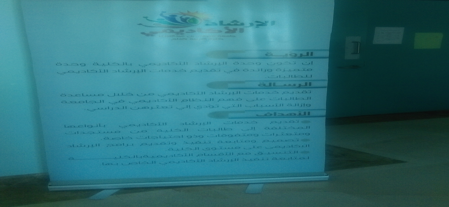 direction:rtl;unicode-bidi:embed">من جانبها شاركت أقسام الكلية في هذا العمل الإرشادي بإشراف منسقات الإرشاد الأكاديمي بالأقسام والمرشدات الأكاديميات للطالبات بالتعاون مع أعضاء هيئة التدريس؛ حيث تم عقد عدد من المحاضرات على مسرح الكلية، من ضمنها محاضرة (نظام الدراسة الجامعية وتعريف لائحة الدراسة والاختبارات) أعدتها وقدمتها د.هويدا عبد القادر يوم الاثنين الموافق 9/1/1438هـ تناولت فيها تعريف الطالبات بنظام الدراسة، وآلية الحذف والإضافة ، وتحذير الطالبة من تكرار الرسوب والحصول على الإنذارات، وتوعيتها بأهمية حضور المحاضرات، وآلية الحرمان، وتعريف الطالبات بالاعتذار والتأجيل والانقطاع عن الدراسة وإعادة القيد، وآلية التحويل من الكليات والتخصصات المختلفة، وكيفية احتساب المعدل.