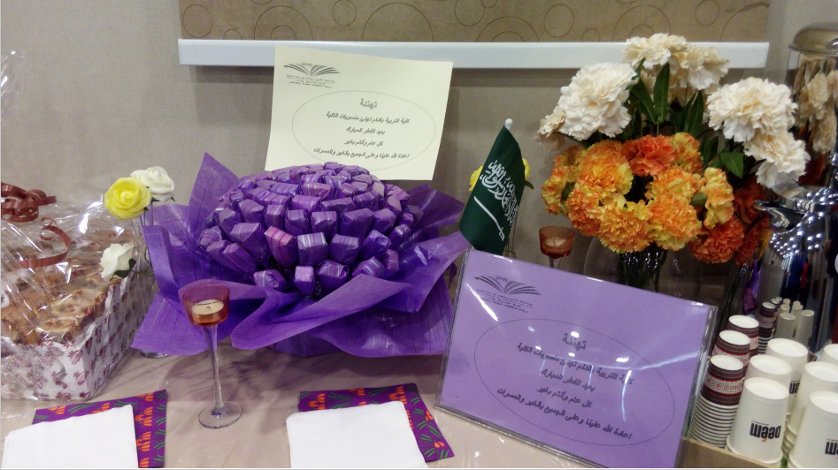 كما ترفع الكلية ممثلة بعميدتها د.مليحة القحطاني وجميع منسوبي الكلية أسمى آيات التهاني والتبريكات لمعالي مدير الجامعة الدكتورعبدالعزيز بن عبدالله الحامد بالثقة الملكية بتعينه مديراً للجامعة متمنين لمعاليه التوفيق والسداد في خدمة الدين و المليك والوطن .