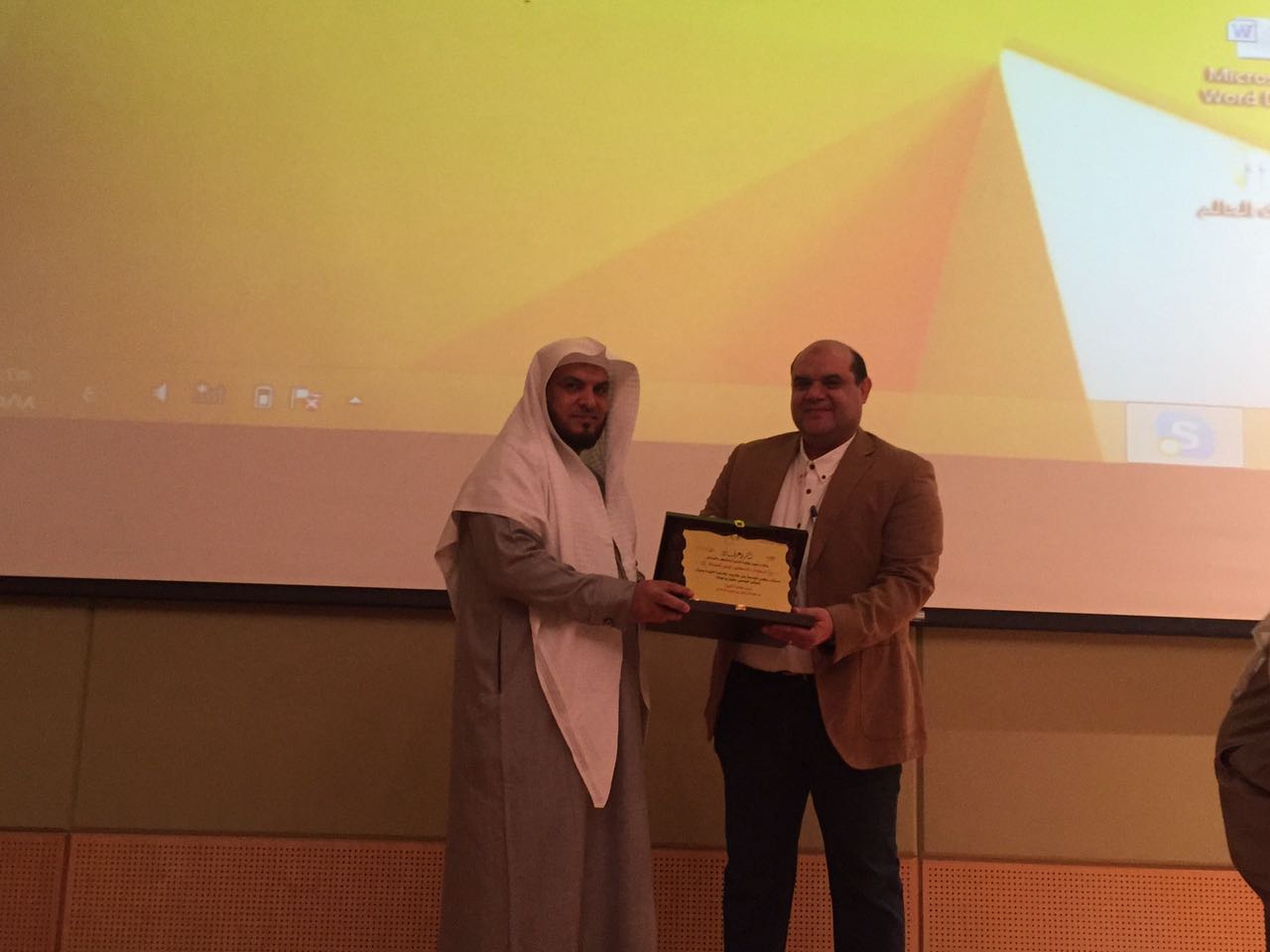 وفي ختام اللقاء قدّم الدكتور الرفدي عميد الكلية شكره وامتنانه للدكتور الصواف على ما قدم من نفع للطلاب، وسلمه درعًا تذكاريًّا من الكلية تعبيرًا عن هذا الشكر، كما أجريت سحوبات وجوائز في نهاية اللقاء.