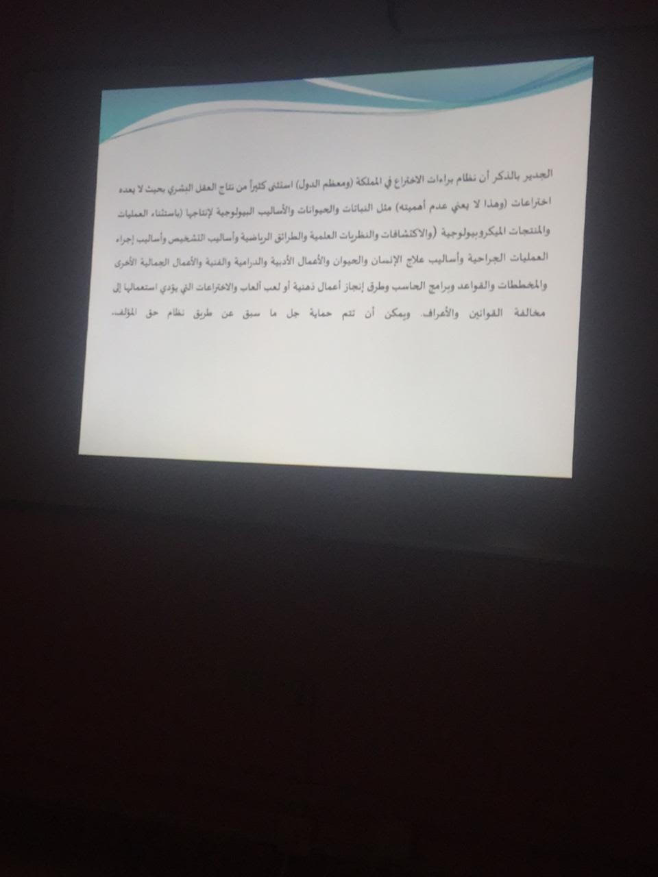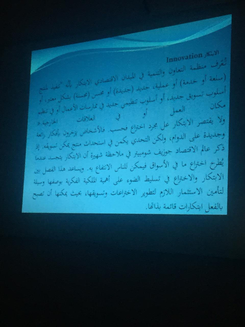 وذلك لتحفيز طالبات الكلية وتشجيعهم على المشاركة بمحور الابتكار، حيث ابتدأت الدورة بعرض تقديمي لتوضيح ما هو الابتكار والاختراع ثم وضحت الدكتورة منى الدوسري أهمية الابتكار وخصائصه والعوامل المؤثرة عليه وكيفية تسجيل براءة اختراع وتوضيح الفرق بين الابتكار والاكتشاف العلمي وعرضت نماذج مختلفة من الاختراعات والابتكارات في مجالات مختلفة.