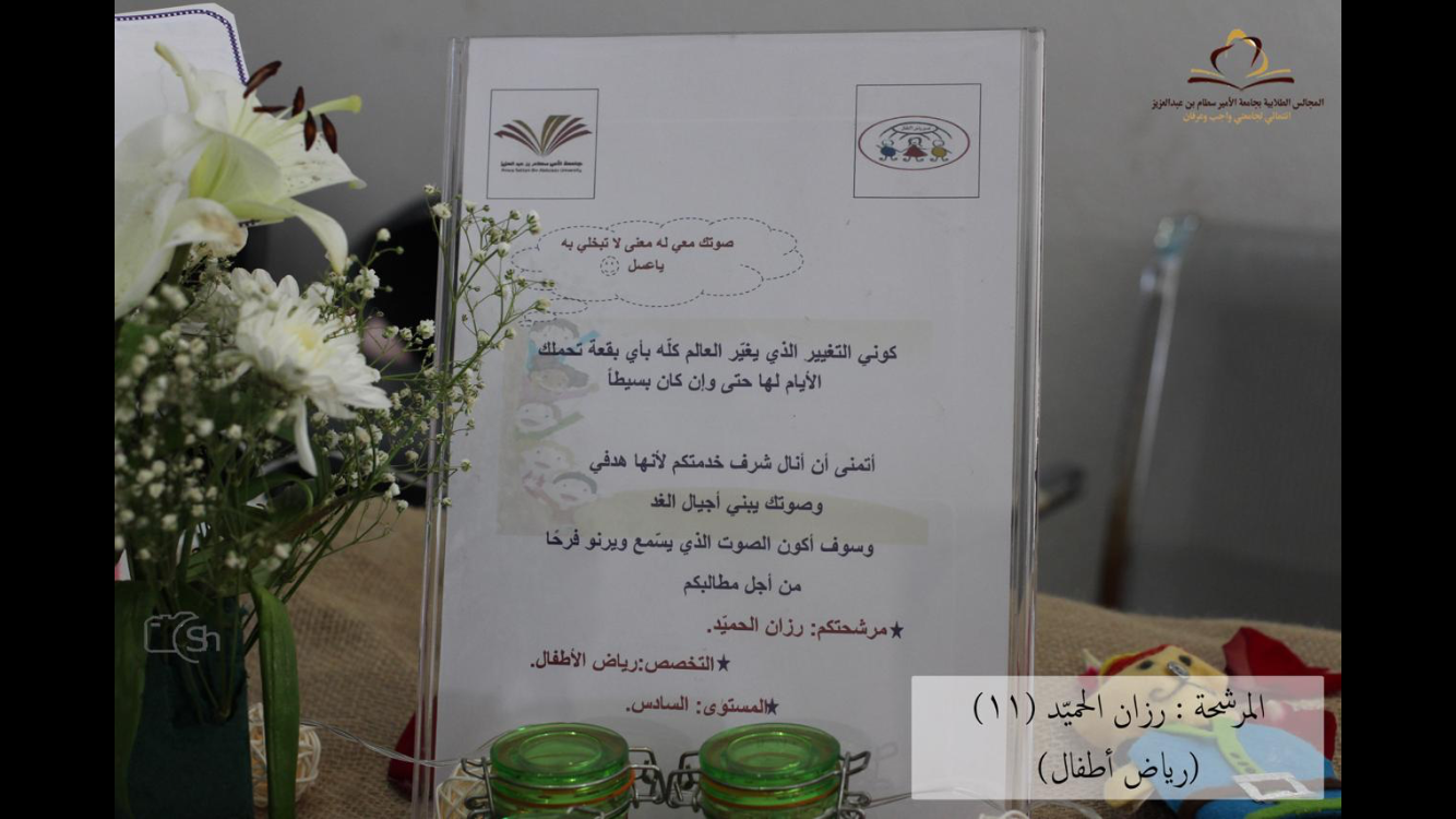 قامت وحدة العمل الطلابي ممثلة بالمجالس الطلابية وتحت إشراف مشرفة وحدة الأنشطة الطلابية والمجالس الطلابية الدكتورة أماني المصري بإعلان نتائج فرز وتشكيل المجالس الطلابية بعد اعتمادها من وكيلة الكلية و سعادة عميد الكلية،حيث ضمت التشكيلات المجلس الاستشاري برئاسة الطالبة أمجاد التميمي من قسم رياض الأطفال ،وكذلك تضمنت التشكيلات أقسام الكلية المختلفة(قسم التربية الخاصة برئاسة روان القحطاني وقسم رياض الأطفال برئاسة أمجاد التميمي وقسم الدراسات الإسلامية برئاسة هدى المؤذن وقسم اللغة العربية برئاسة منال الزهراني،هذا وينوي المجلس عقد اجتماعه الأول يوم الثلاثاء المقبل بتاريخ 21-2-1440هـ.