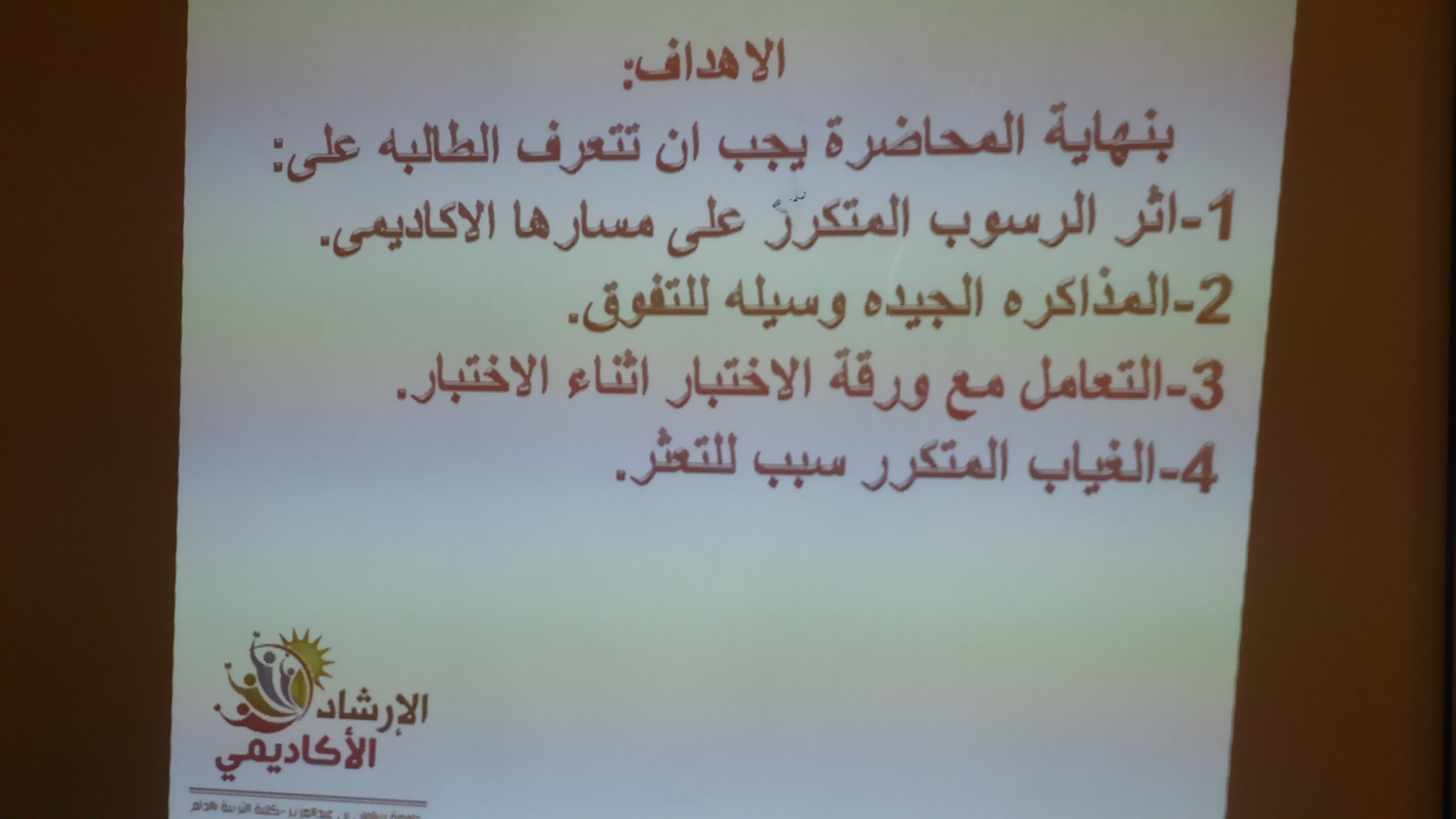 - إرشادات عامة للمتعثرات أكاديميا : تقديم د.أحلام مكي استاذ مساعد بقسم علم النفس ومرشدة اكاديمياً بالقسم
