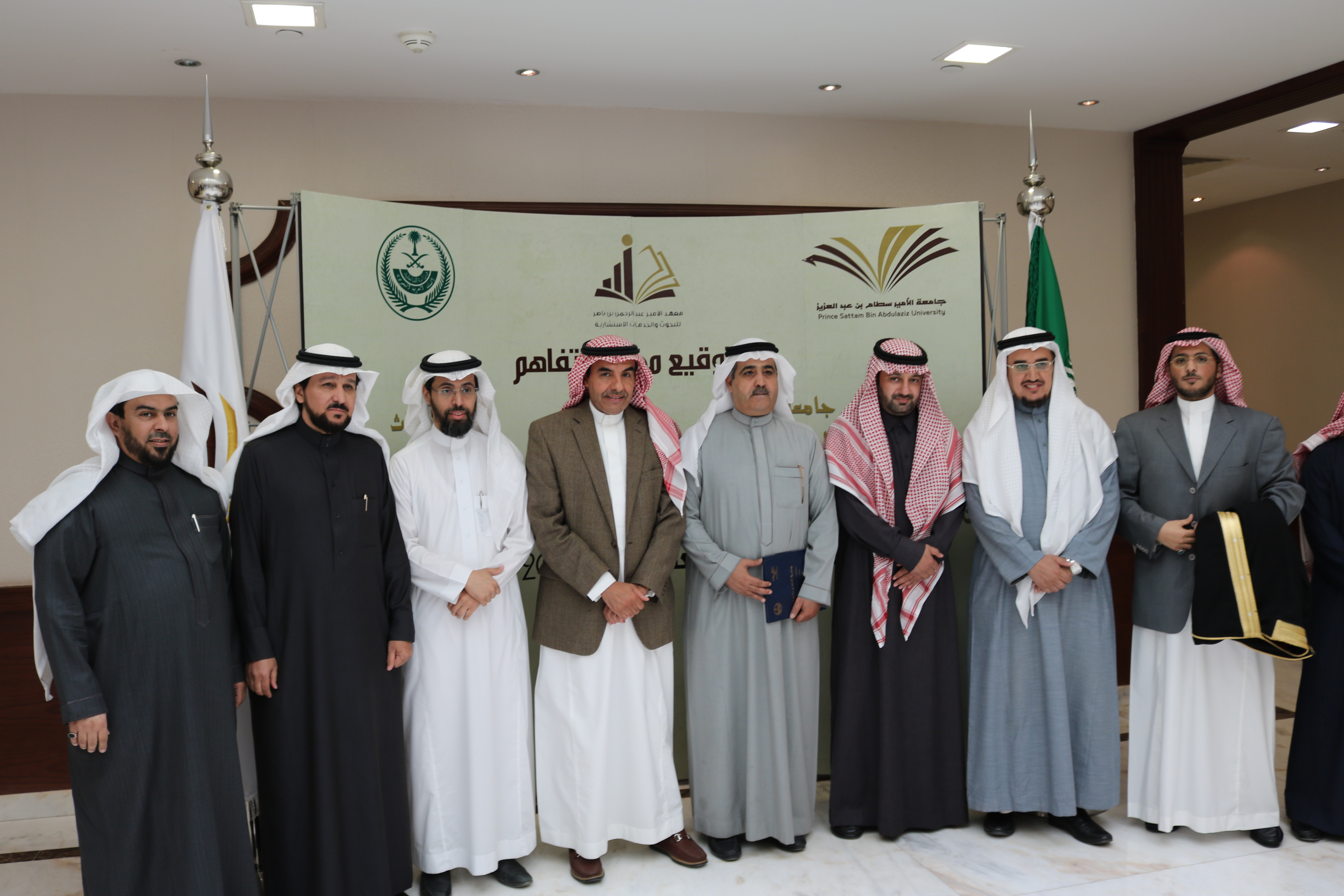 تحت رعاية معالي مدير الجامعة الدكتور عبدالرحمن بن محمد العاصمي وقعت جامعة الأمير سطام بن عبدالعزيز ممثلة بمعهد الأمير عبدالرحمن بن ناصر للبحوث والخدمات الاستشارية مذكرة تفاهم مع مركز أبحاث مكافحة الجريمة بوزارة الداخلية , وذلك صباح الأربعاء الموافق20/4/1438هـ بمكتب معالي مدير الجامعة .