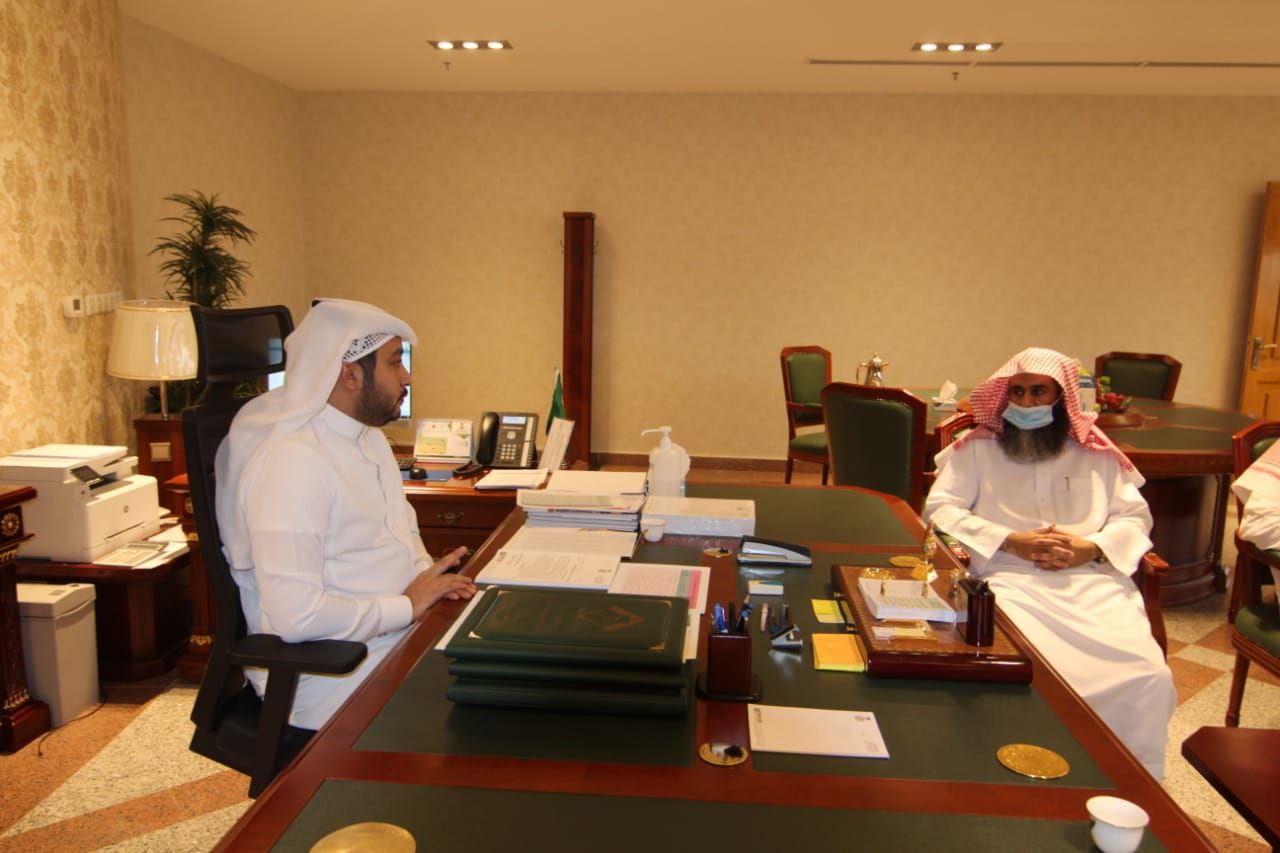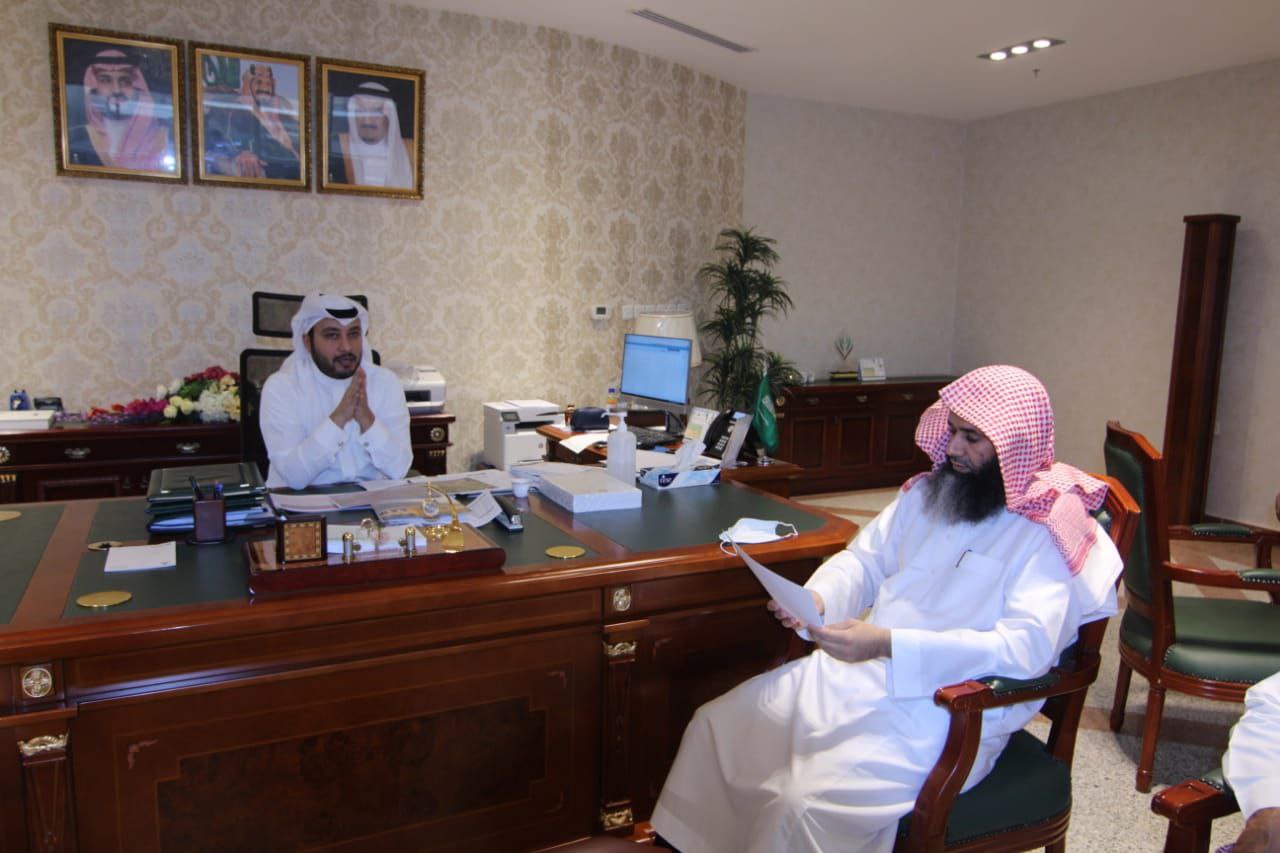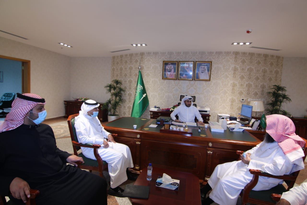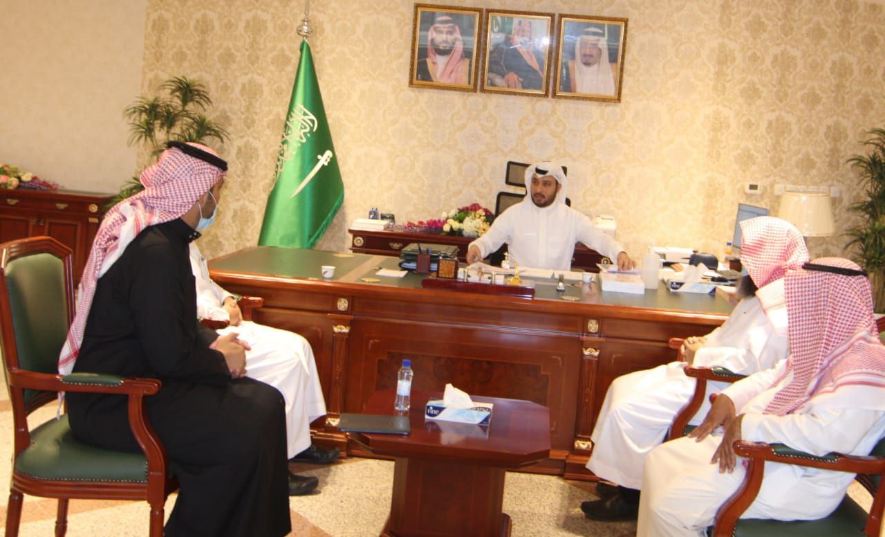 بصحبة عميد كلية إدارة الأعمال في حوطة بني تميم د. إبراهيم بن محمد الداود زار وفد من الكلية رئيس بلدية حوطة بني تميم م. سعود السلمي، يوم الأربعاء ١٤٤٢/٧/٢٦هـ.