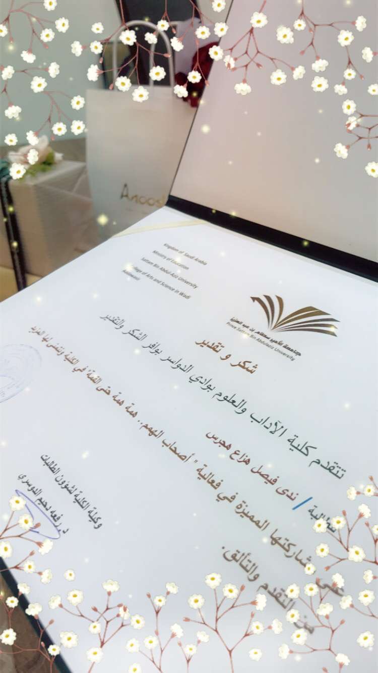 وختمت الفعالية بالشكر الجزيل لوحدة الإرشاد الأكاديمي بالكلية لاهتمامها بهذه الفئة من الطالبات ، وكما قدمت شهادة شكر لكل منهن وبعض الهدايا تحفيزًا وتشجيعاً لهن على مواصلة التفوق الأكاديمي.