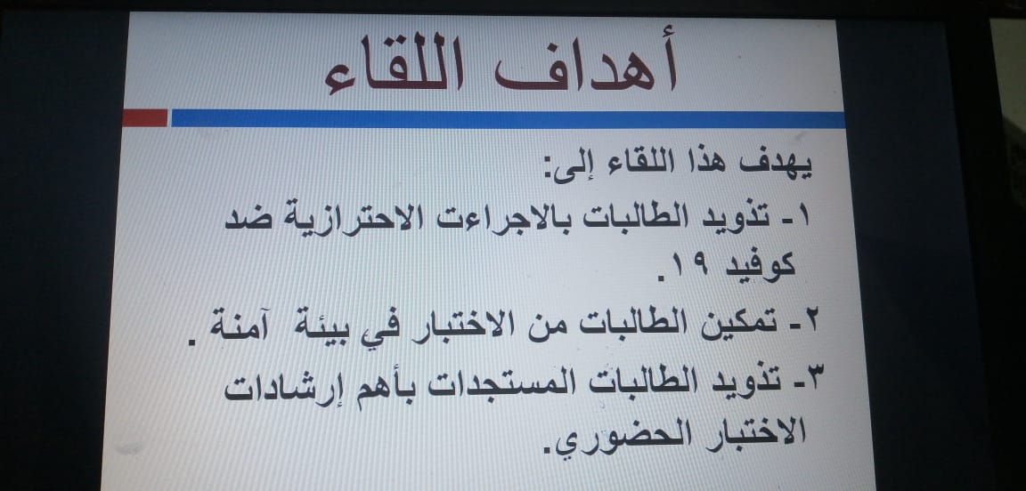3-أن تتعرف الطالبات المستجدات بأهم إرشادات الاختبار الحضوري.