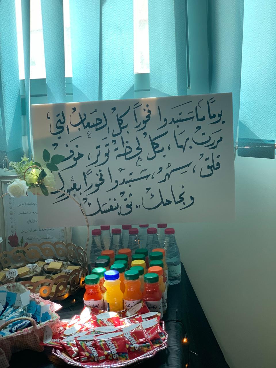 صاحب النشاط ركن عٌرض فيه توزيعات وارشادات تثقيفية للطالبات.