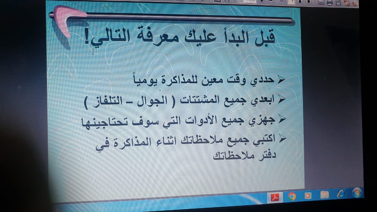 - تعريف الطالبة بطريقة المذاكرة الذكية.