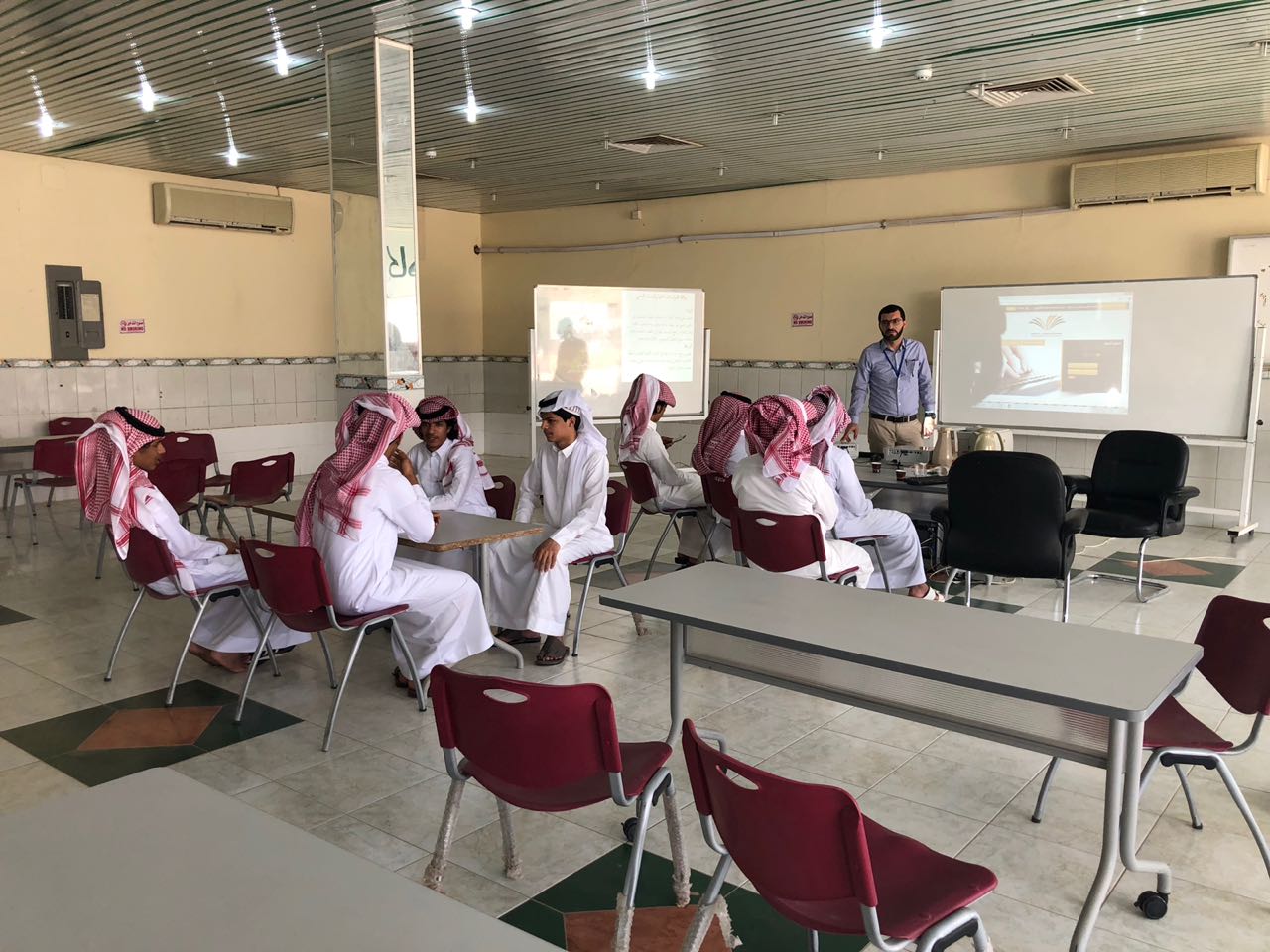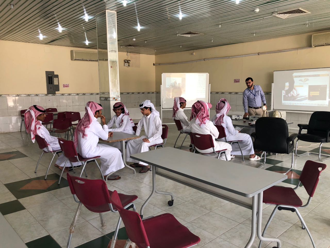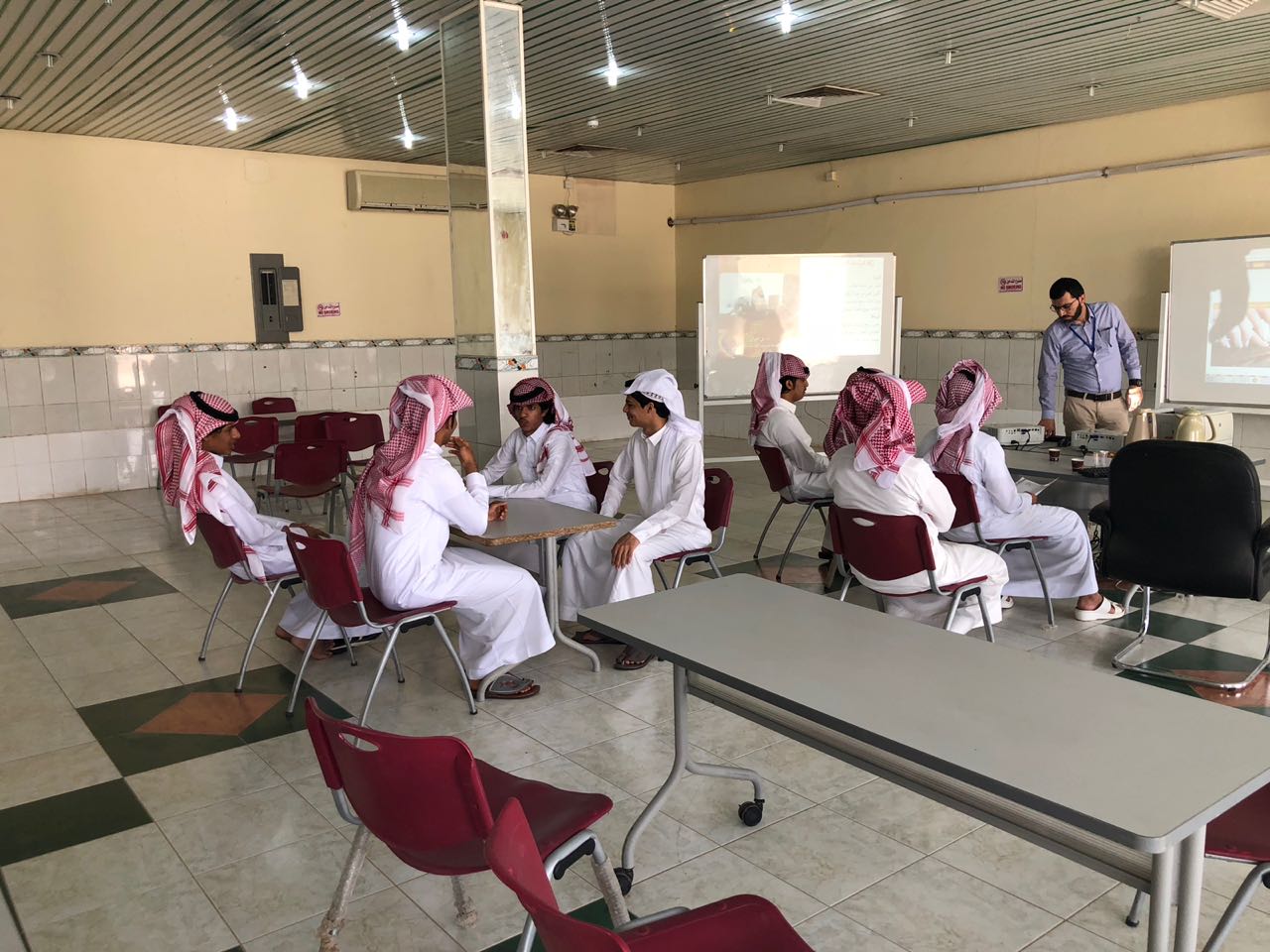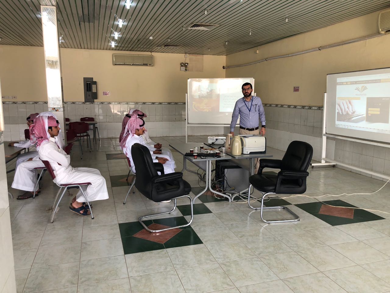 عقب ذلك بدأ أعضاء الإرشاد الأكاديمي بتكملة اللقاء وذلك على نحو خمس ايام متتالية تضمن التعريف بالأقسام والترحيب بالطلاب المستجدين ، ومن ثم تم عرض أهم الخدمات التي تقدمها الكلية وذلك من خلال عرض تقديمي يوضح الهيكل التنظيمي للكلية ، كما تم الإشارة إلى أهمية الأندية الطلابية وأهدافها وحث الطلاب على الانضمام للأندية .