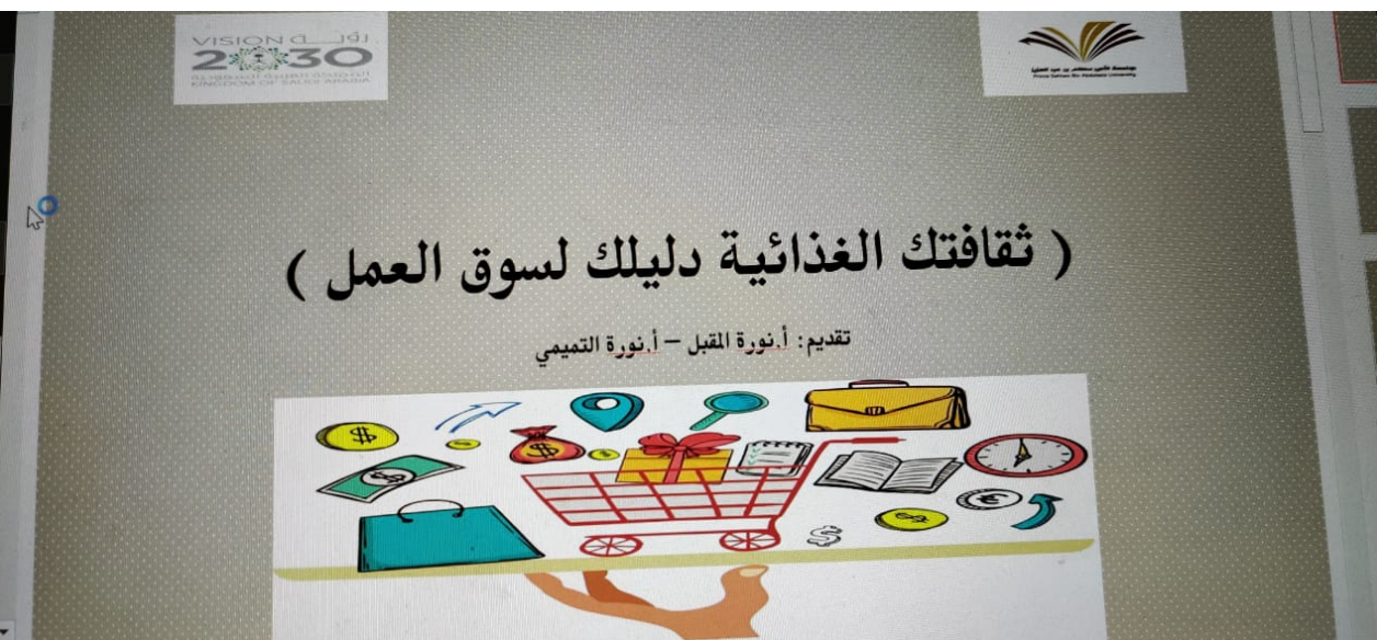 نظمت وحدة الخريجات بكلية التربية بالدلم متمثلةً بوحدة الإرشاد المهني ورشة بعنوان "ثقافتك الغذائية دليلك لسوق العمل" قدمتها كل من أ. نورة المقبل -رئيسة الارشاد المهني في الكلية و أ. نورة التميمي -رئيسة وحدة المجتمع في الكلية- وذلك صباح يوم الأثنين الثلاثون من شهر شعبان لعام 1442هـ على البلاك بورد.