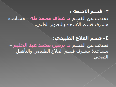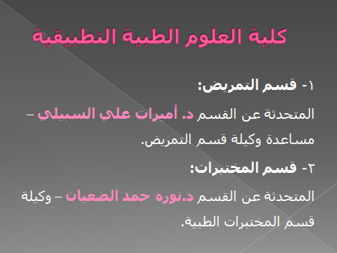 هدف اللقاء إلى تعريف الطالبات بالمسار الصحي بالكليات المتاحة بالجامعة وكذلك أقسام كل كلية حيث تحدثت وكيلات الأقسام بالكليات عن :-