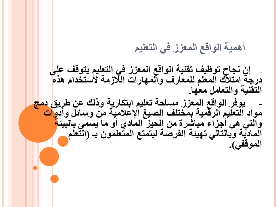 انطلاقا من الإتجاه التربوي العالمي لتعزيز استخدام التكنولوجيا الرقمية في المجالات التعليمية نظمت وحدة البحث العلمي تحت إشراف منسقة الوحدة الدكتورة / نجلاء حامد ورشة عمل بعنوان " دور تقنية الواقع المعزز بين النظرية والتطبيق " حضرتها عضوات هيئة التدريس والإداريات بالكلية وقدمتها الاستاذة / رزان مناعي . تحدثت فيها عن تقنية الواقع المعززكأحد احدث الاتجاهات التعليمية التي تمزج بين الواقع الاكاديمي وتكنولوجيا التعليم في تدريس الامور العلمية التي يصعب رؤيتها والتدريب عليها علي ارض الواقع وذلك بتفعيل واقع افتراضي لتعليمها ، واوضحت الورشة امكانات استخدام تكنولوجيا الواقع المعزز في كافة المجالات العلمية التطبيقية باستخدام الواقع الافتراضي ، كما تناولت الورشة في اطار مفاهيمي للخصائص والاهمية والتطبيقات والتجارب المستخدمة والامكانات المتوقعة مستقبليا لهذه التقنية . وعُرض خلال الورشة جانب تطبيقي لبعض البرامج المطبقة والمستخدمة في المجالات التعليمية مثل برنامج AR وقامت بتدريب العضوات علي وضع بعض النماذج فيه واستخدامها علي الشاشات التعليمية ، كما قدمت الورشة بُعد علمي تكنولوجي جديد حاز علي قبول واستحسان الحضور.