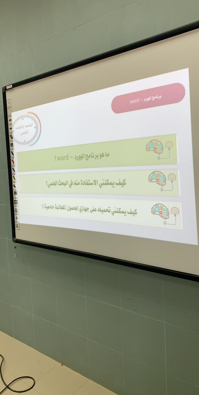 من منطلق حرص الكلية الى صقل شخصية الطالبة وتنمية مهاراتها البحثية أقامت وحدة البحث العلمي بالتعاون مع قسم الدراسات الإسلامية بكلية التربية بالدلم ورشة عمل بعنوان "استثمار التقنية في البحث العلمي" قدمتها أ. ربى ناصر الشيبان -عضو هيئة التدريس بقسم الدراسات الإسلامية- وذلك يوم الأحد السادس من شهر رجب للعام 1441هـ في قاعة التدريب استهدفت فيها الطالبات بهدف التعريف بماهية البحث العلمي والتقنية وطريقة استخدام برنامج الورد Word وما هو دور التقنية في البحث العلمي مع شرح التطبيقات الالكترونية وأهم المواقع والمهارات المرتبطة بالبحث في عالم التقنية وطرق التواصل مع المشرف.