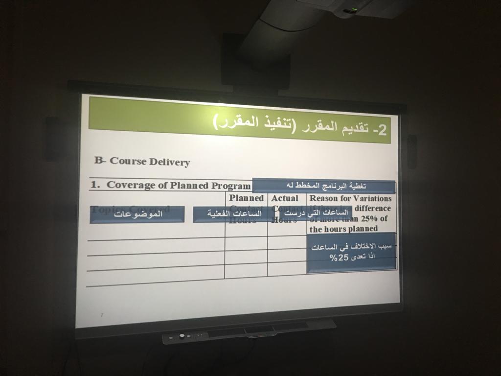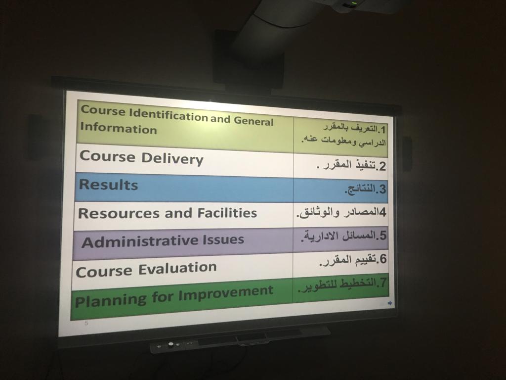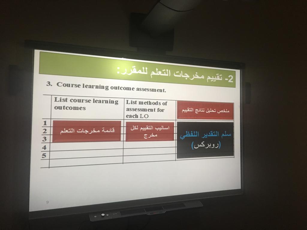 تحقيقا لهدف الرقي بمستوى الجودة الأكاديمية ورفع مستوى مهارة التوثيق لأعضاء الهيئة التدريسية في عمادة السنة التحضيرية شطر الطالبات ، نظمت وحدة الجودة والتطوير بإشراف الأستاذة ميسون دعاس يومي الأربعاء والخميس الموافق27-28 /1440/3هـ ورشة تدريبية بعنوان ( تقرير المقرر) COURSE REPORT. حيث قدمن منسقات الجودة لأقسام العمادة الأستاذة رباب سوركتي والأستاذة عائشة إبراهيم شرحاً تفصيلياً لكيفية تعبئة نموذج تقرير المقرر المعتمد من قبل الجامعة ، وافتتحت الدورة بنبذة عامة عن متطلبات الجودة للاعتماد الأكاديمي و شرح مفصل و عرض تقديمي لمحتويات التقرير. ثم قدم بعد ذلك شرح عملي لخطوات كتابة تقرير المقرر ، بدءاً بالتعريف بالمقرر الدراسي ومعلومات عنه ،مروراً بتنفيذ المقرر، وتقييم مخرجات التعلم للمقرر ، والمصادر و الوثائق ، والمسائل الإدارية ، وتقييم المقرر وأخيراً التخطيط لتطوير المقرر. و اختتمت الدورة بنصائح عامة لجعل التقرير ذو فائدة كبيرة في خطة التطوير للجودة.