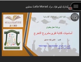فقد هدفت إلى مساعدة الطالبات في كيفية كتابة تقري مشروع التخرج وفق طريقة علمية تحافظ على النهج العلمي ليخرج بشكل متوافق مع أسس ومعايير البحث العلمي التي تحافظ على جودة وأصالة مشاريع التخرج للطلاب، وقد كانت أهم محاور الورشة: مخطط المشروع، القوالب المعتمدة وأساسيات الكتابة في الوورد.