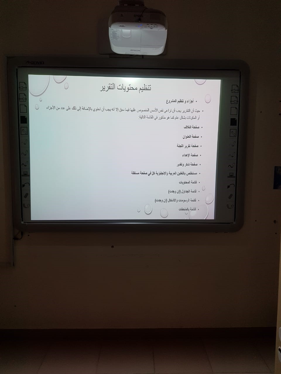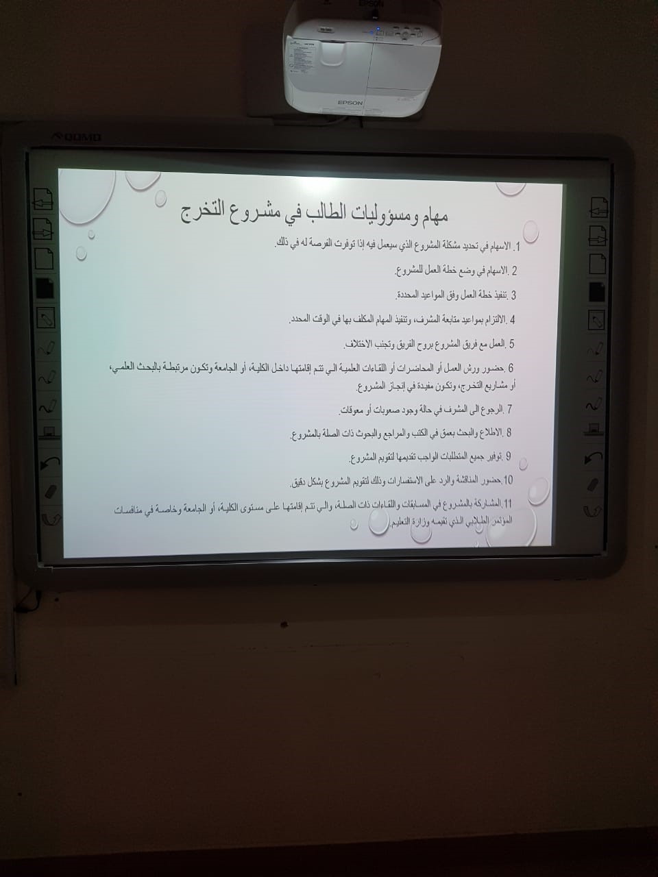 أقامت وحدة الخريجات بكلية المجتمع متمثلة بلجنة مشاريع التخرج محاضرة بعنوان " كيفية كتابة تقارير مشاريع التخرج" من تقديم الأستاذة /سناء أحمد عزام. حيث تهدف الورشة لتعريف الطالبات بمشروع التخرج وأهدافه ودور ومسؤوليات الطالبة في المشروع وتم تعريف الطالبات بالصيغة الفنية لكتابة التقرير من حيث البرنامج المستخدم لكتابة التقرير ونوع الخط وحجمه والهوامش وطريقة ترقيم الصفحات وكيفية عمل جدول المحتويات وجدول الجداول والرسوم ثم توضيح كيفية تنظيم المشروع من حيث الأجزاء وكل جزء كيفية كتابته وقد شهدت المحاضرة تفاعل كبير من الطالبات حيث طرحن بعض الأسئلة المتعلقة بالمحاضرة وناقشن أهم المحاور التي طرحت فيها.